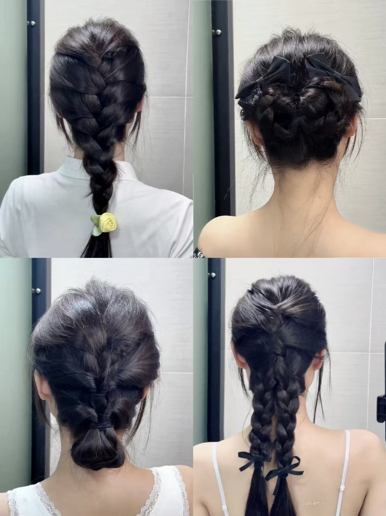 - 通勤半扎编发:适合中长发,5分钟快速上手,搭配职业装/休闲装