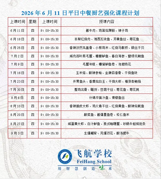 具有中烹初级基础,热爱烹饪, 遵守机构教学管理规定,服从课程安排与现场管理。