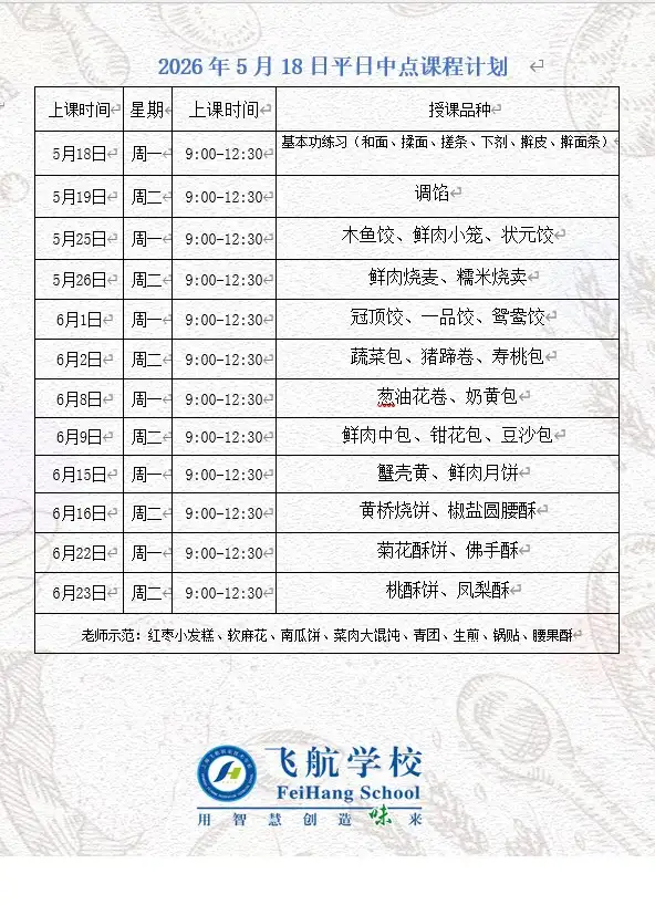 无需面点基础,零基础均可报名,热爱中式面点文化, 遵守机构教学管理规定,服从课程安排与现场管理。