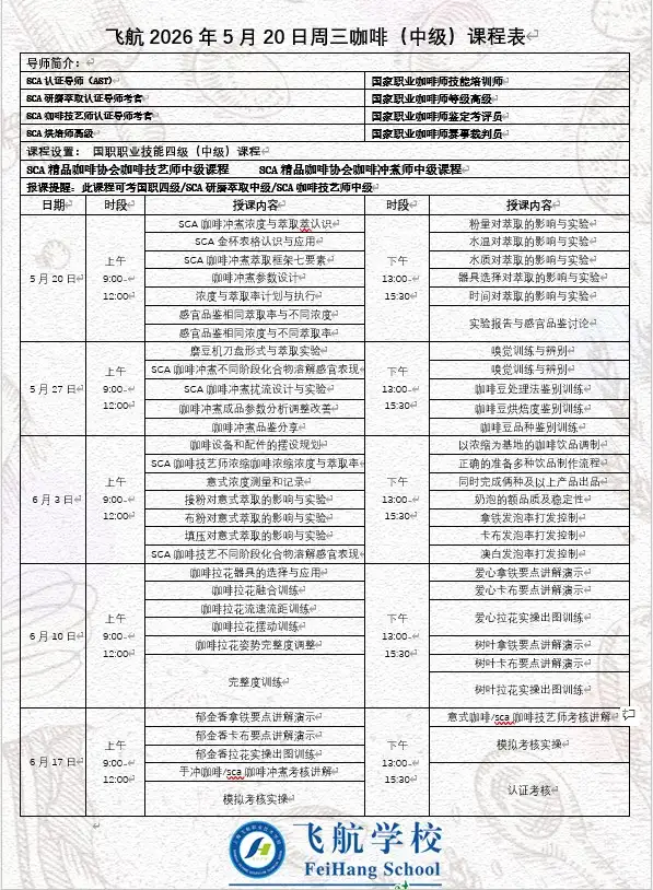 (注:可考取咖啡师中级证书)
