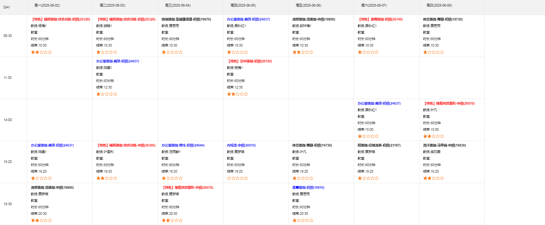 课程名称瑜伽
