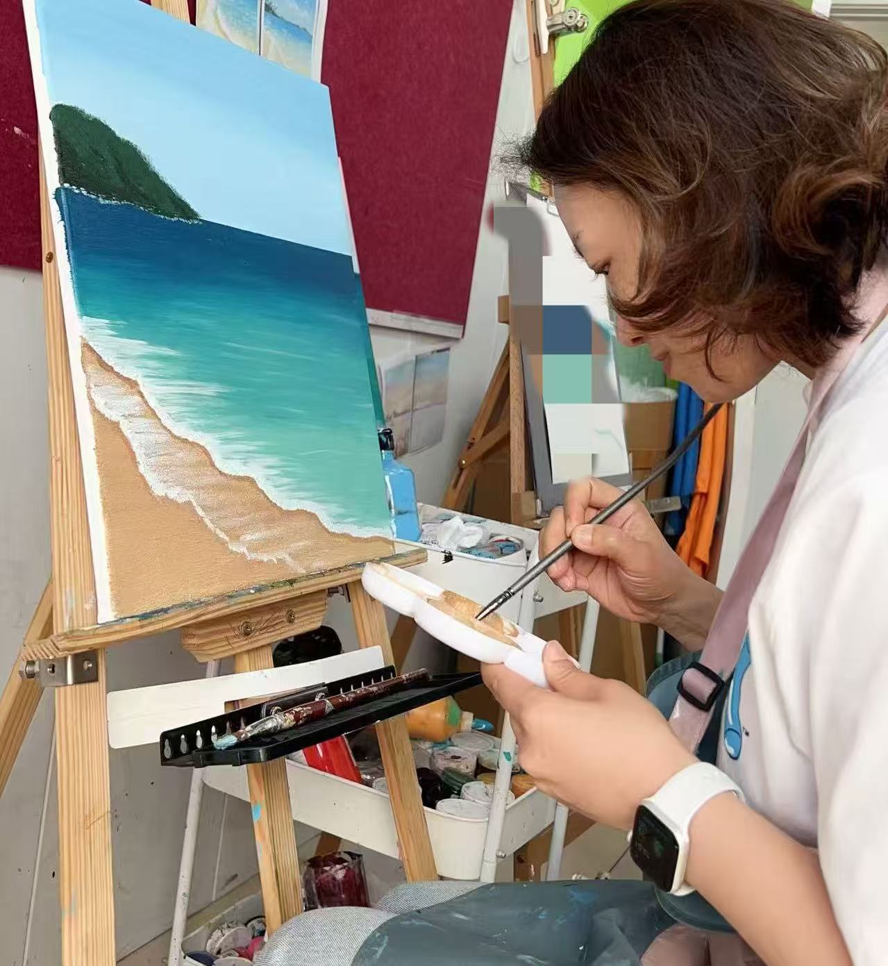 • 老师观察学员进度,提供个性化指导,如色彩调整、笔触运用等。