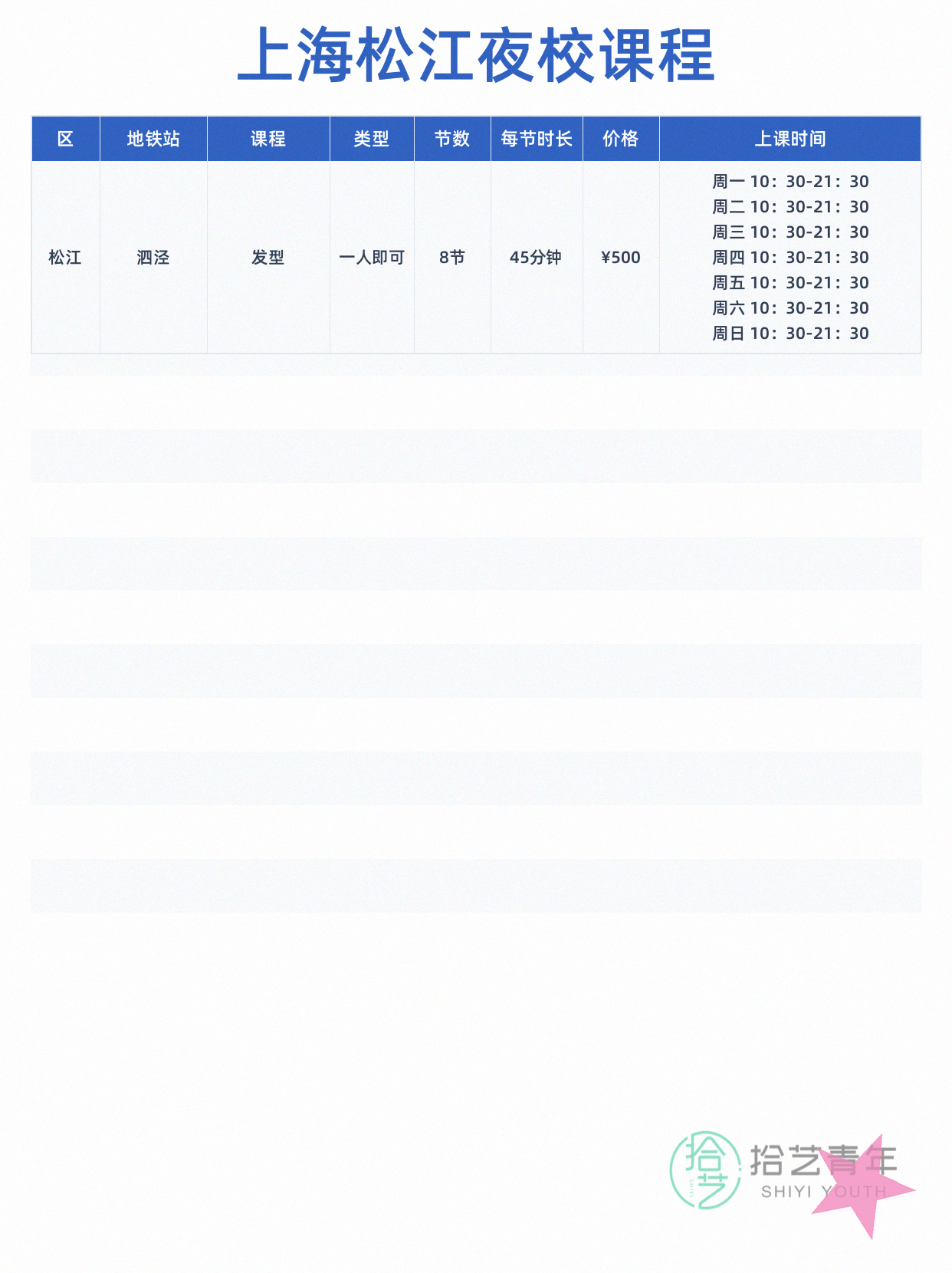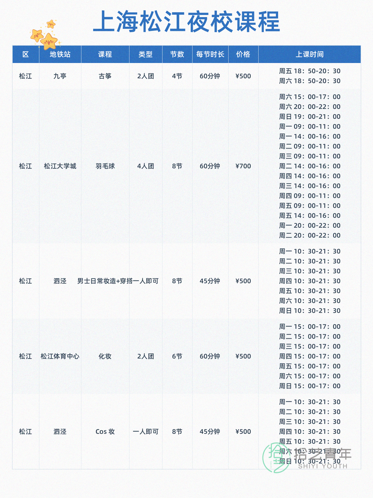 资讯>综合>正文我去松江课超全!拾艺青年2026-04-081 / 3周末挖到宝!松江夜校课超全💇发型 🎸民谣吉他 💄Cos妆地铁直达,下班就能过去直接码住了相关标签##上海夜校##松江##打工人日常##下班后的生活##兴趣爱好