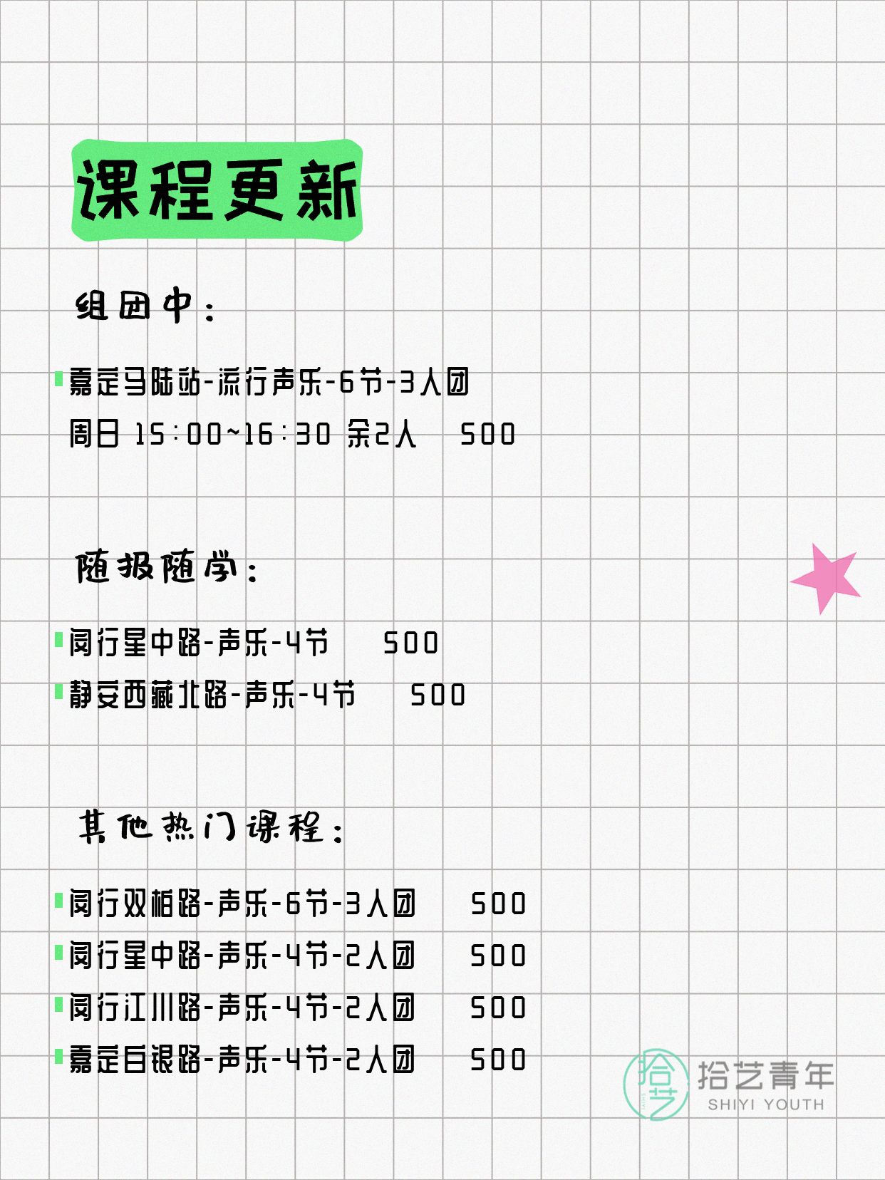 🔥 流行声乐-嘉定马陆站-6节-3人团 💰500