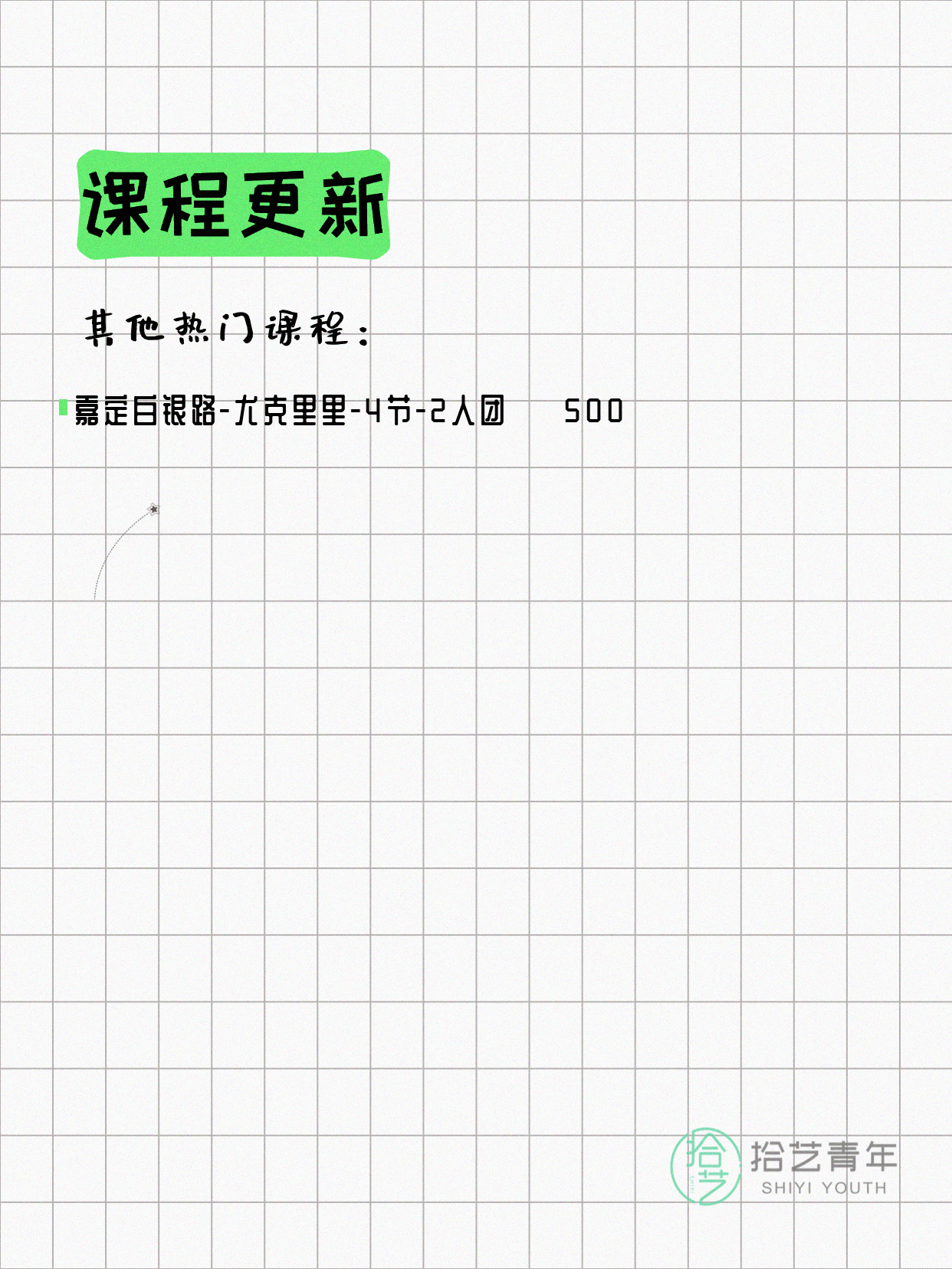 💡 提示:以上课程信息来自拾艺青年小程序,课程可能随报名动态变化,具体以小程序实时信息为准。