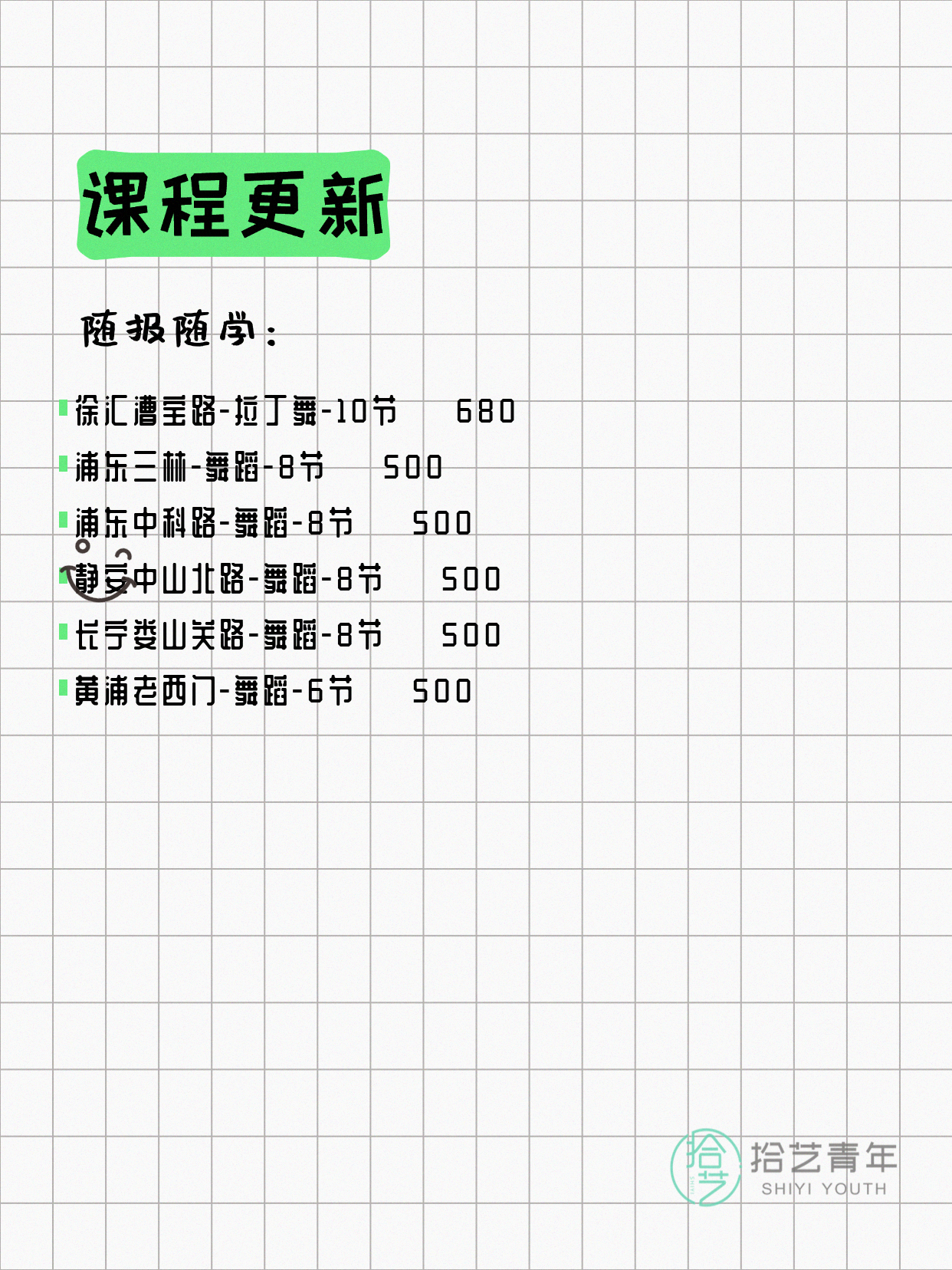 💡 提示:以上课程信息来自拾艺青年小程序,课程可能随报名动态变化,具体以小程序实时信息为准。