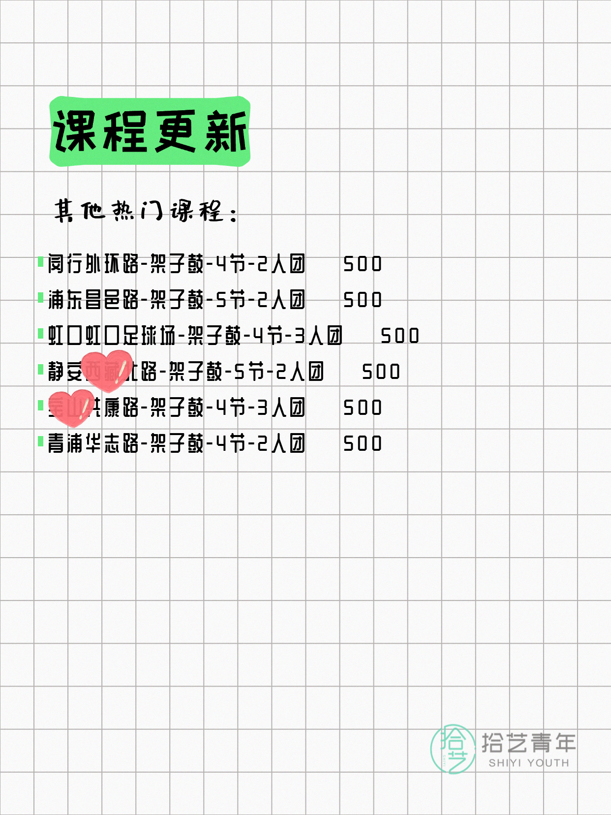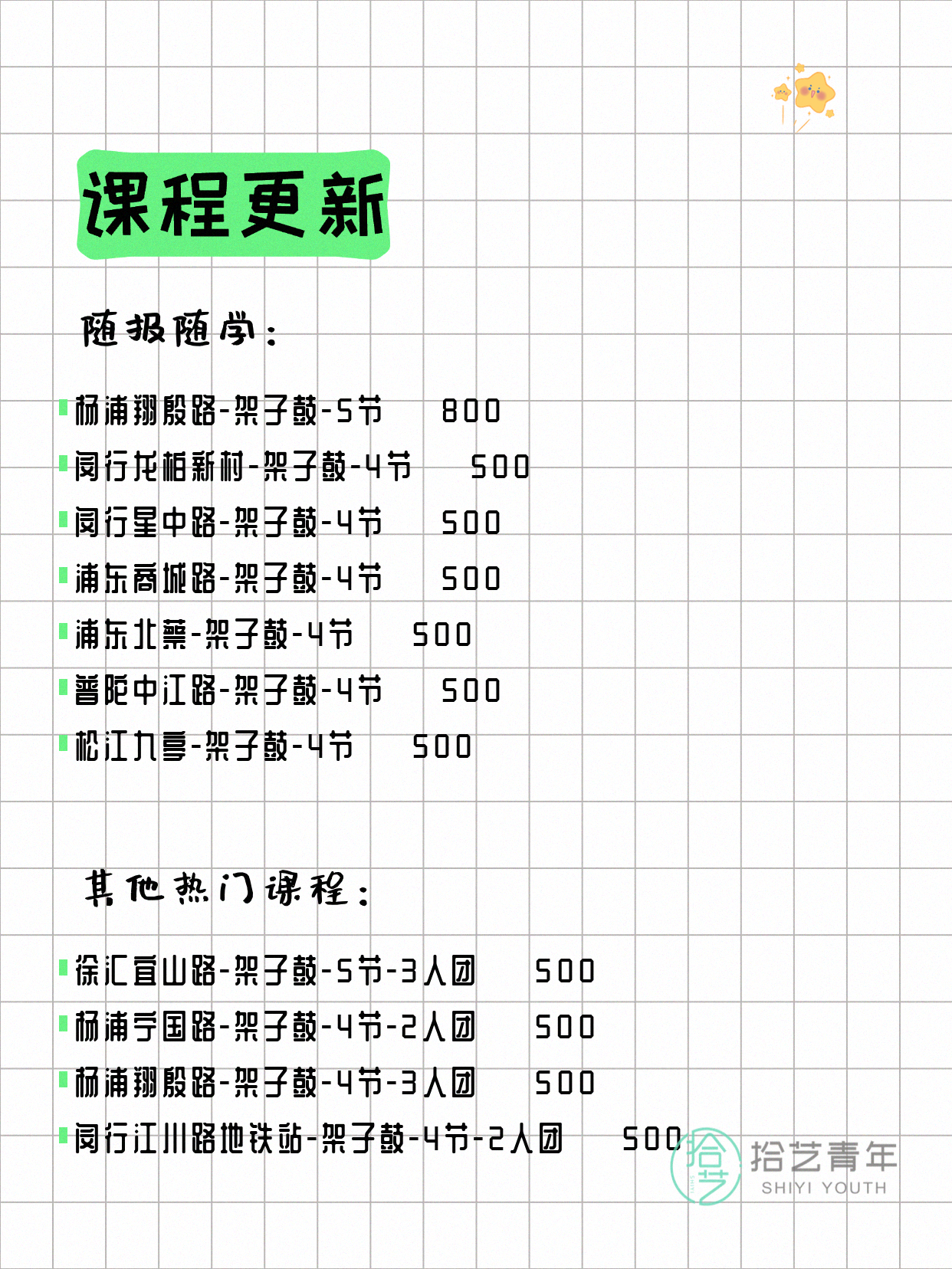 ⭐ 架子鼓-虹口虹口足球场-4节-3人团 💰500