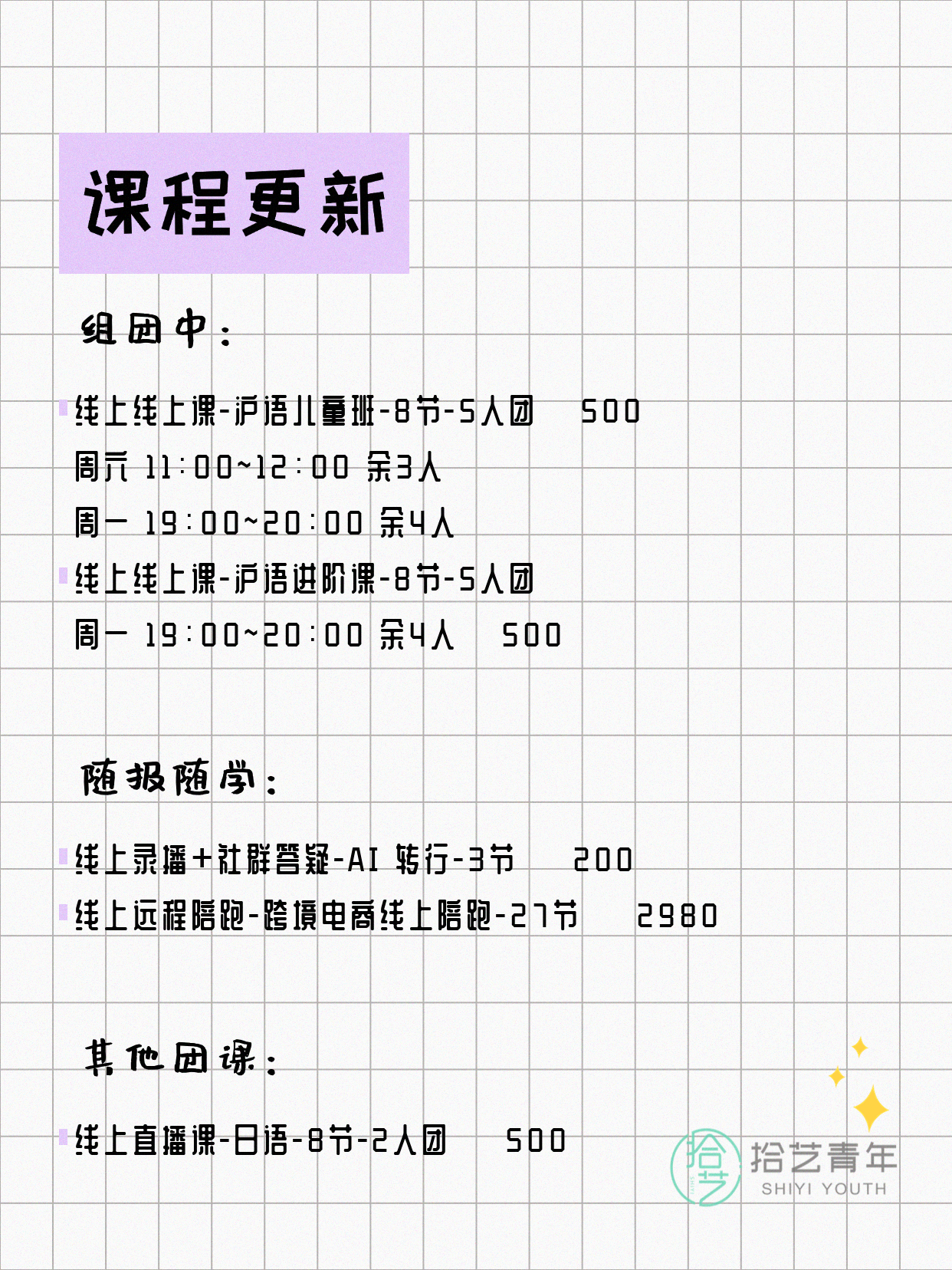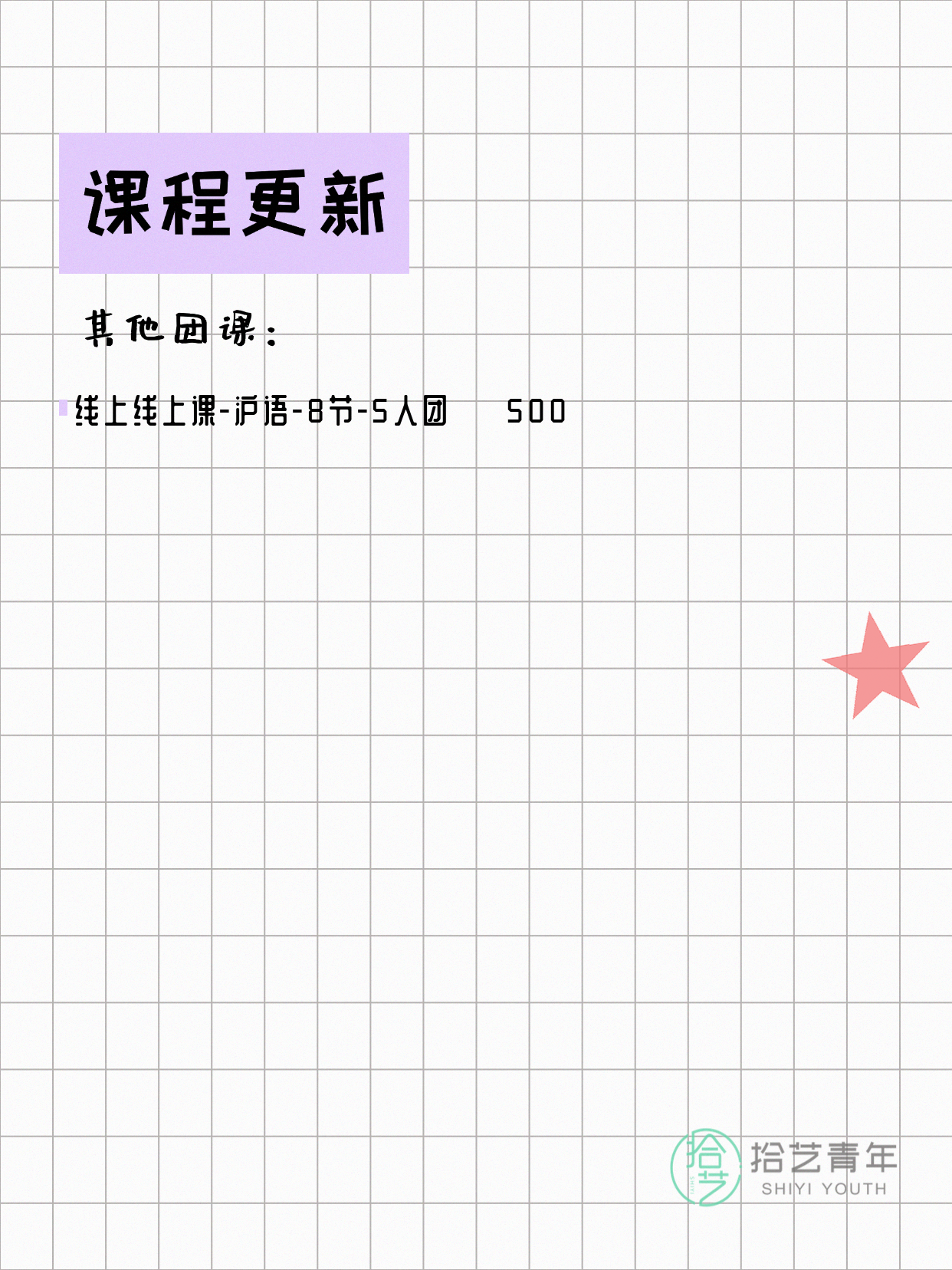 - 线上线上课-沪语进阶课-8节-5人团 周一 19:00-20:00 余4人 💰 500