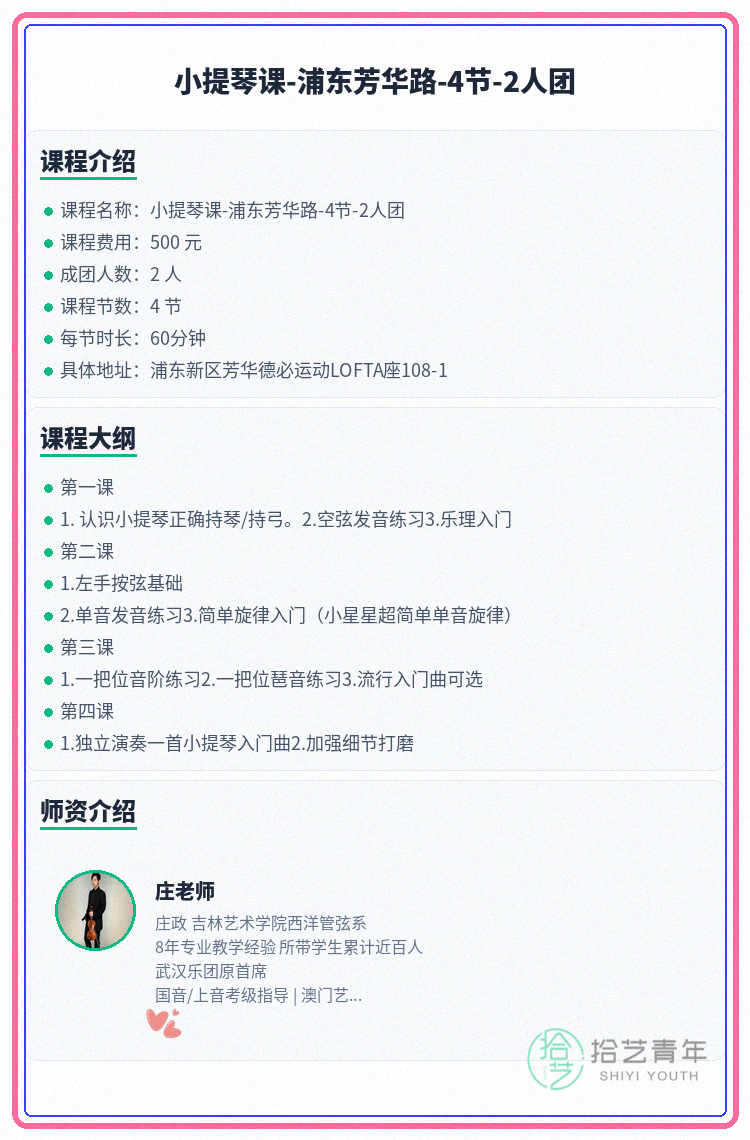 家人们!浦东芳华路小提琴课就差最后1个空位啦🎻