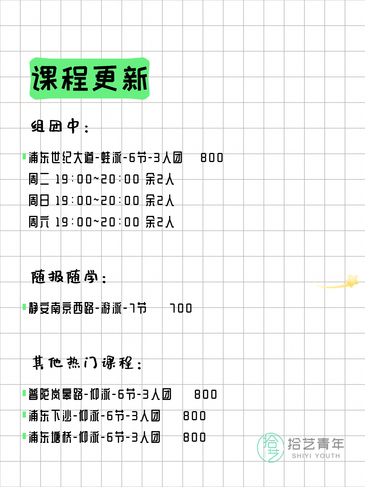 ⭐ 仰泳-徐汇东安路-4节-2人团 💰800