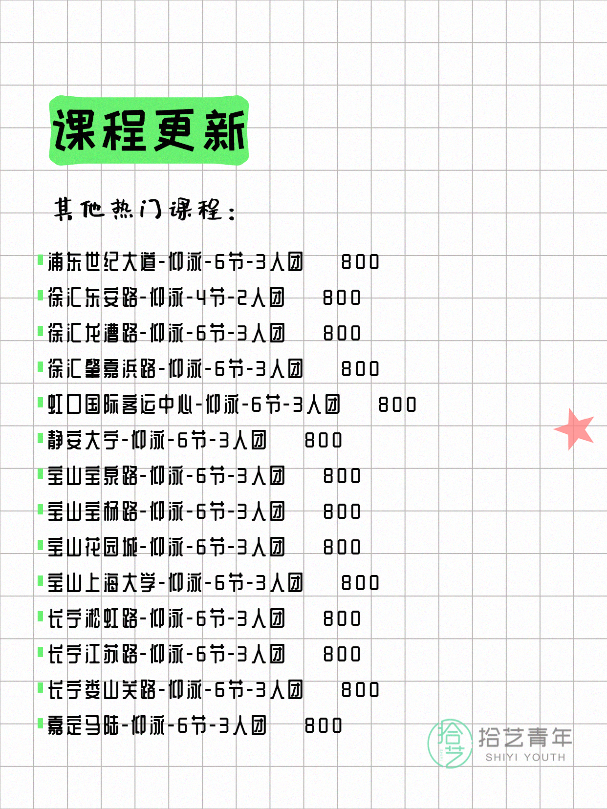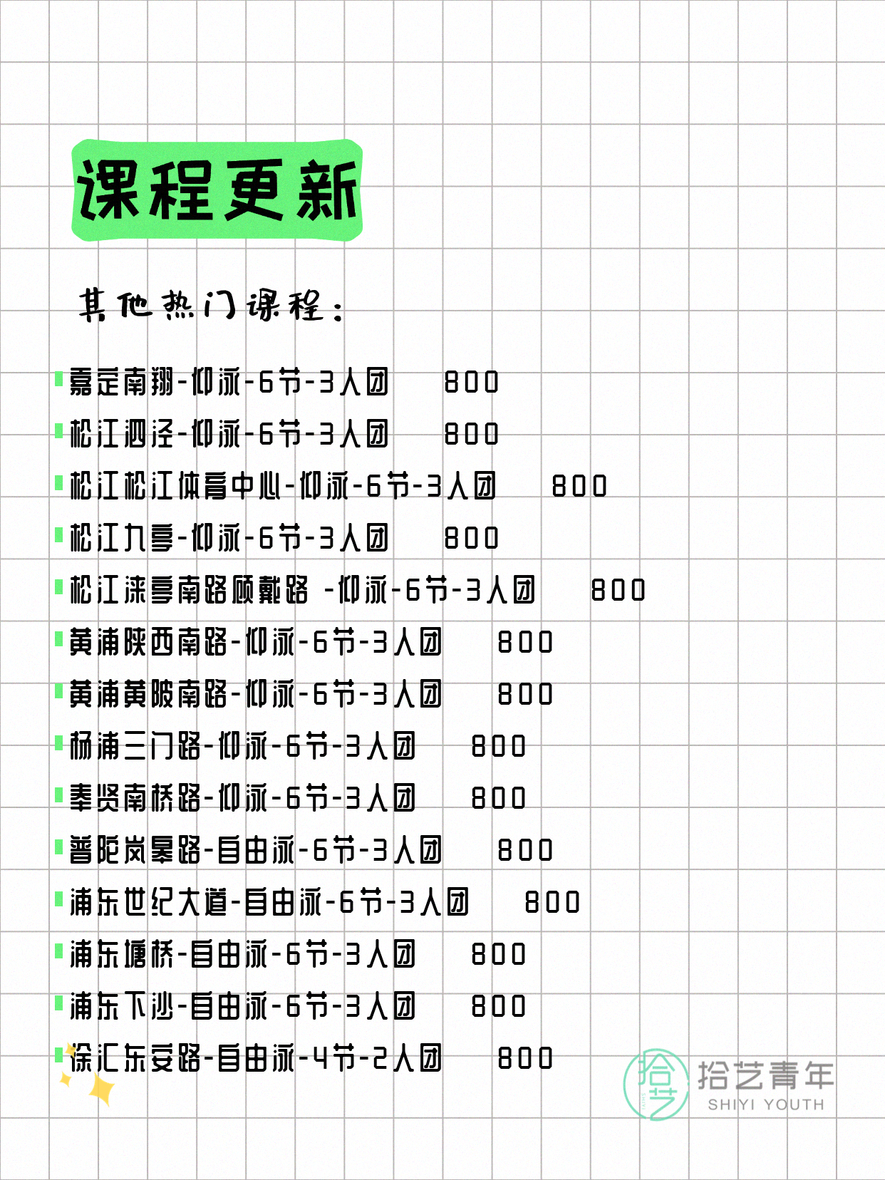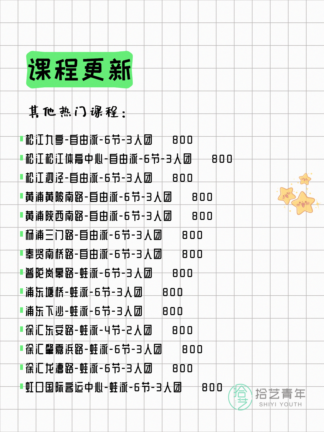 ⭐ 仰泳-长宁江苏路-6节-3人团 💰800