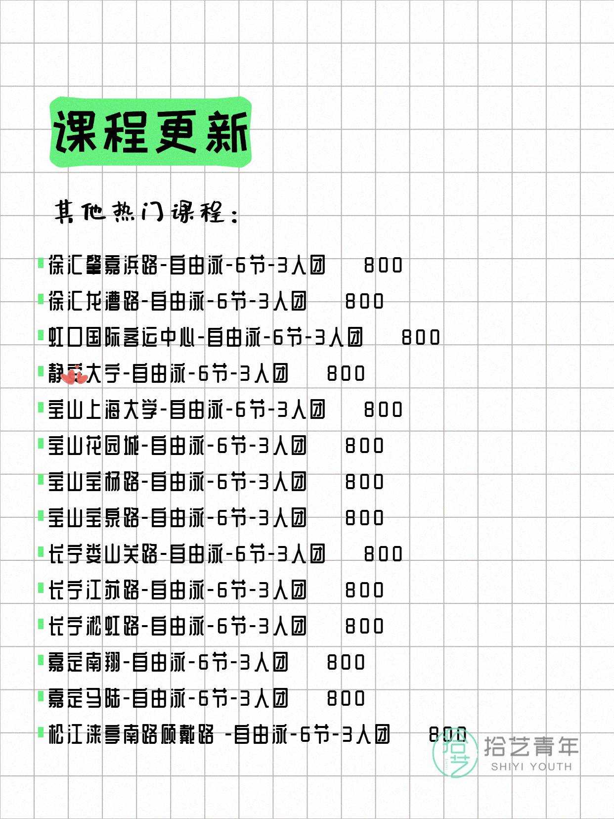 ⭐ 自由泳-宝山上海大学-6节-3人团 💰800