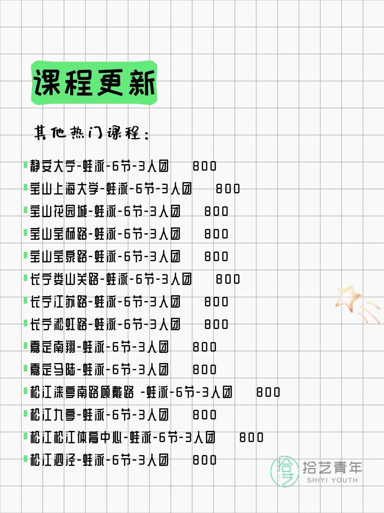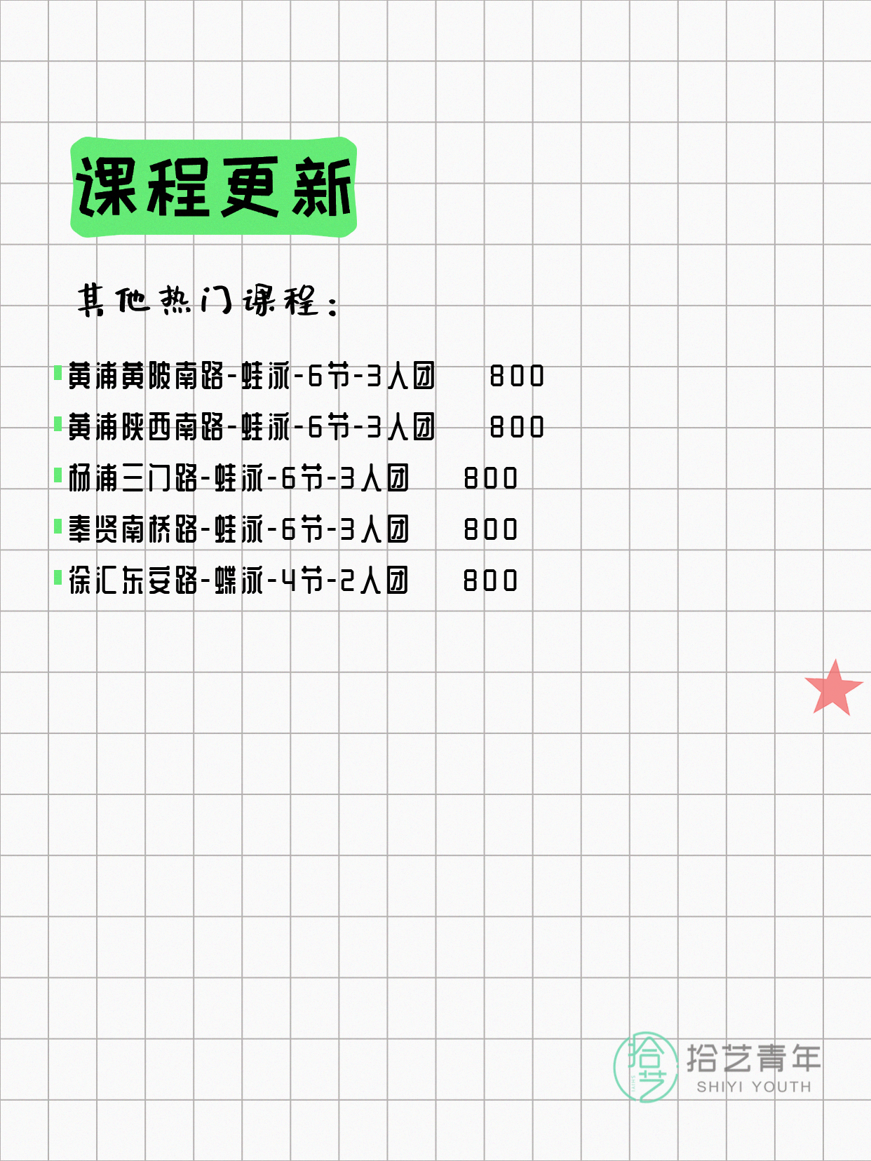 ⭐ 蛙泳-长宁淞虹路-6节-3人团 💰800