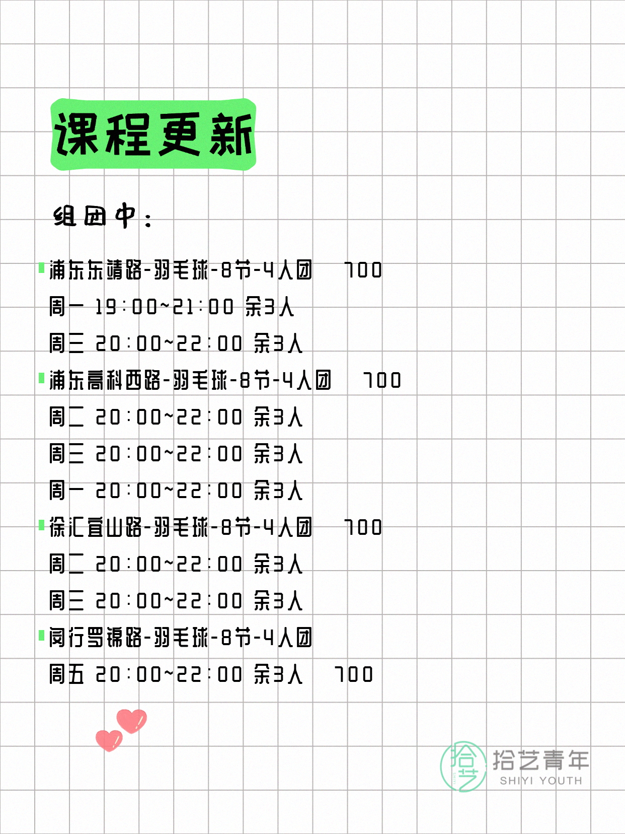 🔥 羽毛球-徐汇宜山路-8节-4人团 💰700