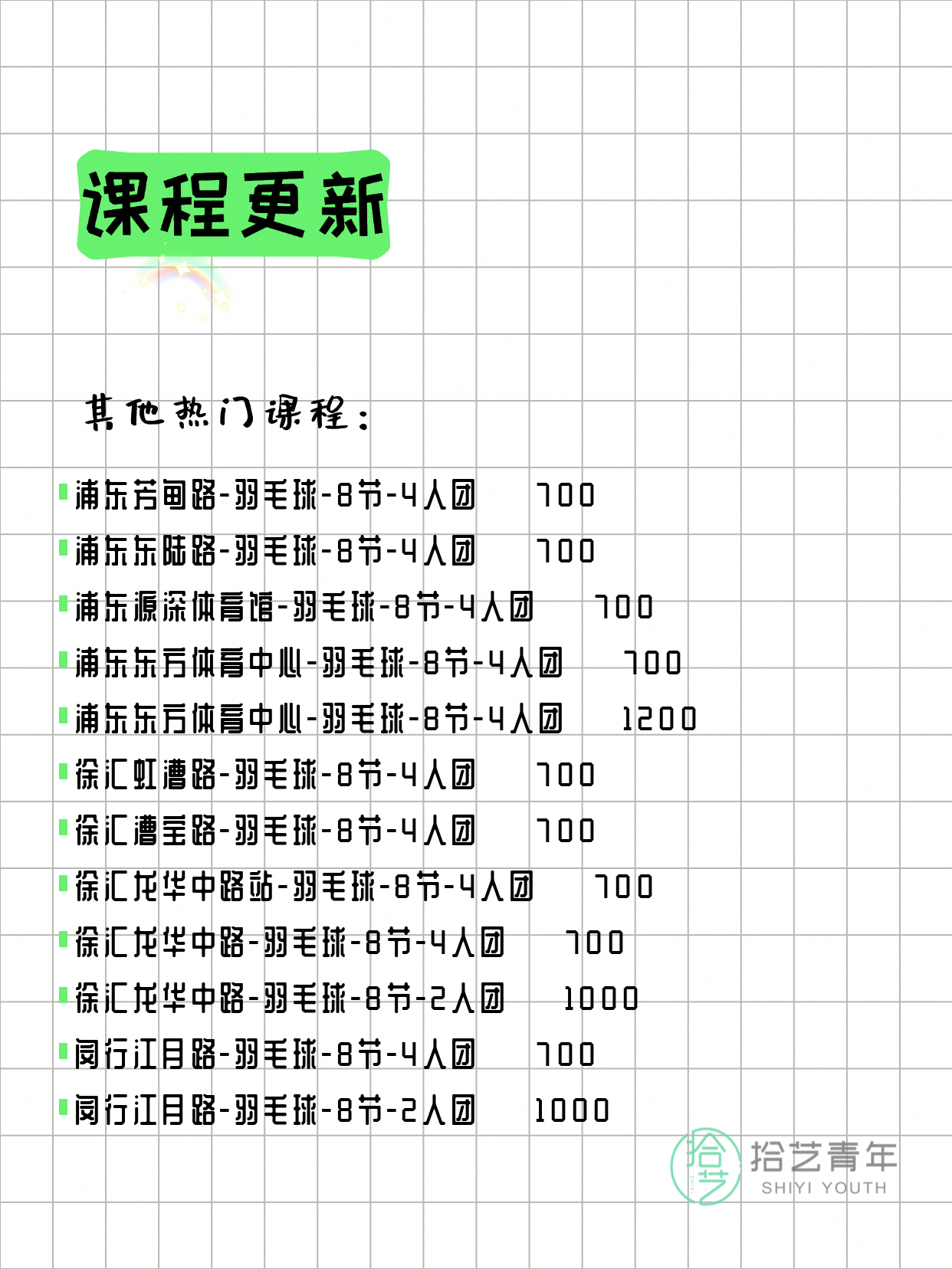 🔥 羽毛球-浦东高科西路-8节-4人团 💰700