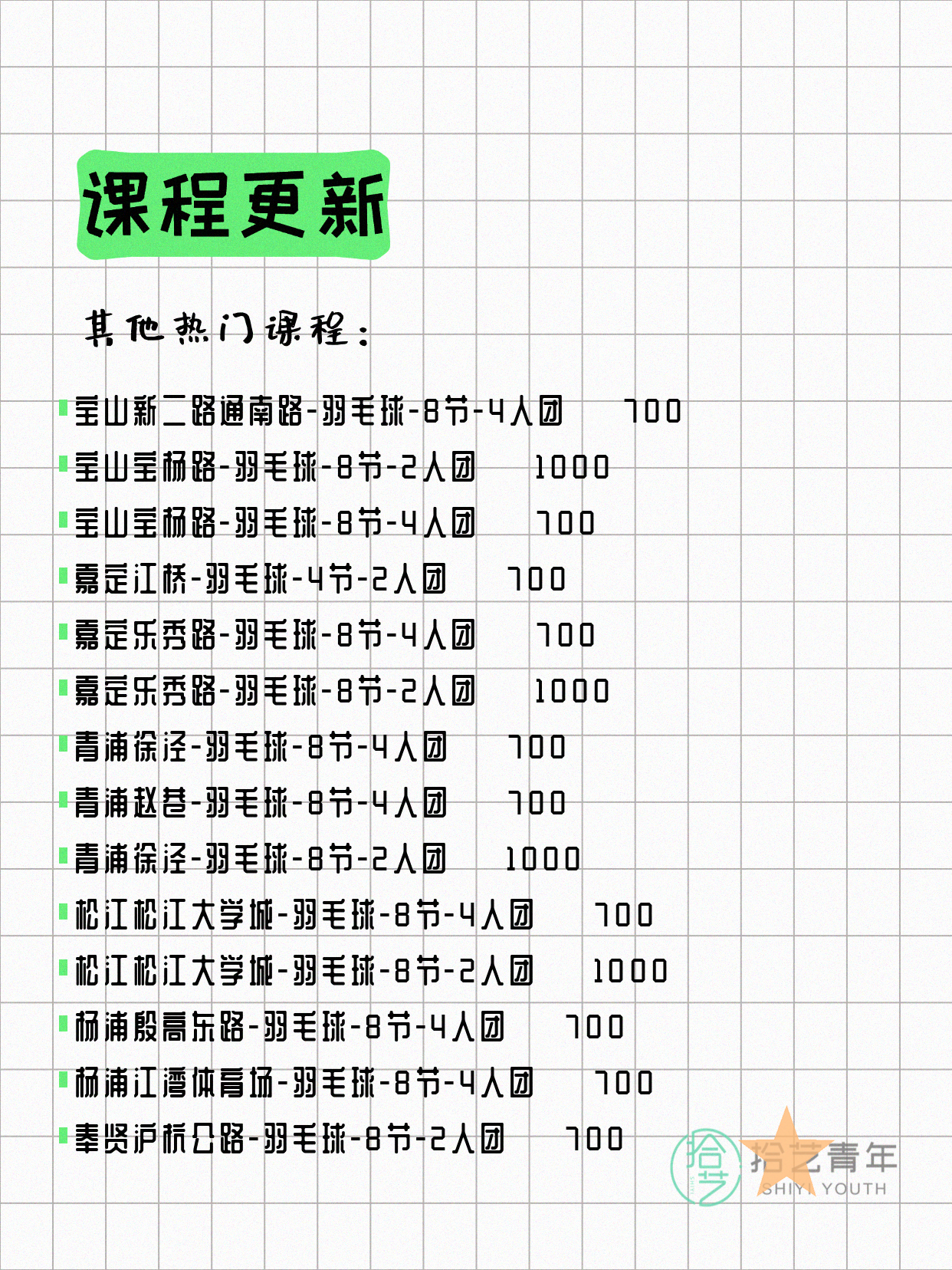 📌 羽毛球-青浦漕盈路-20节-一人即可 💰880