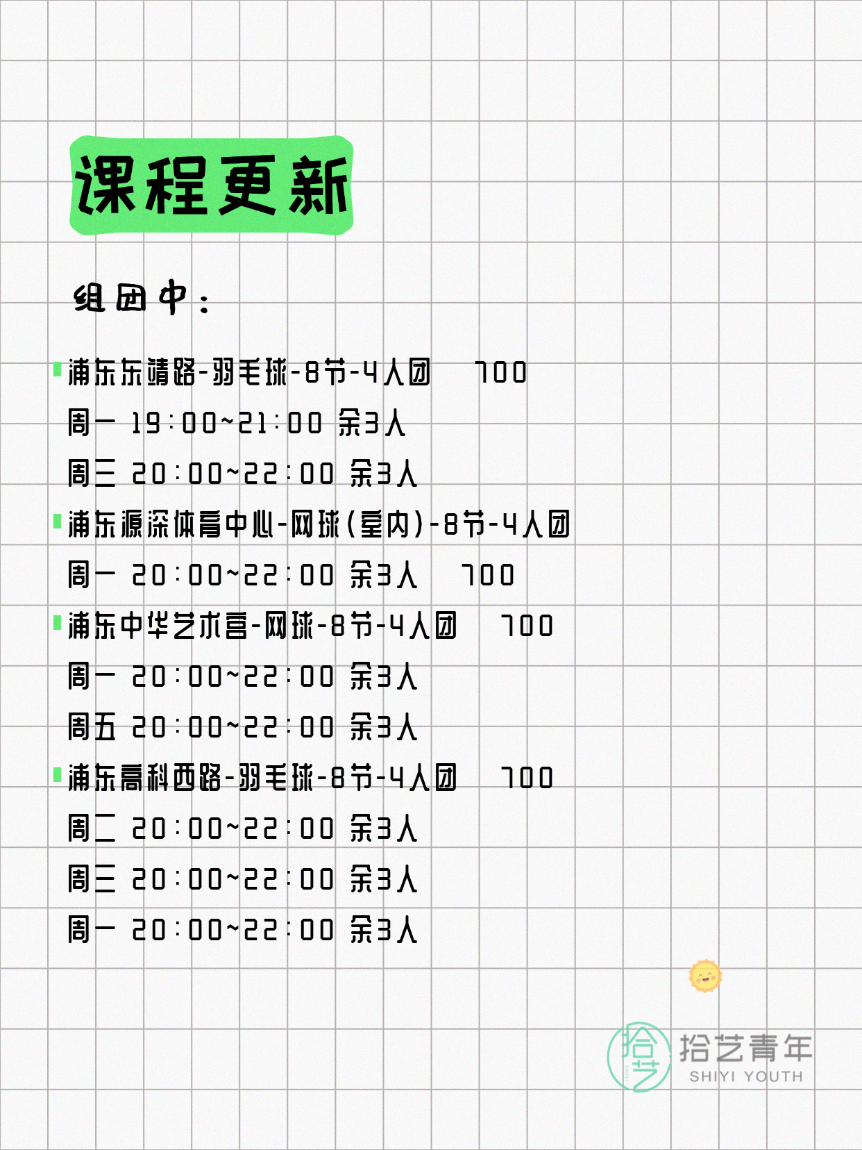 🔥 羽毛球-浦东高科西路-8节-4人团 💰700