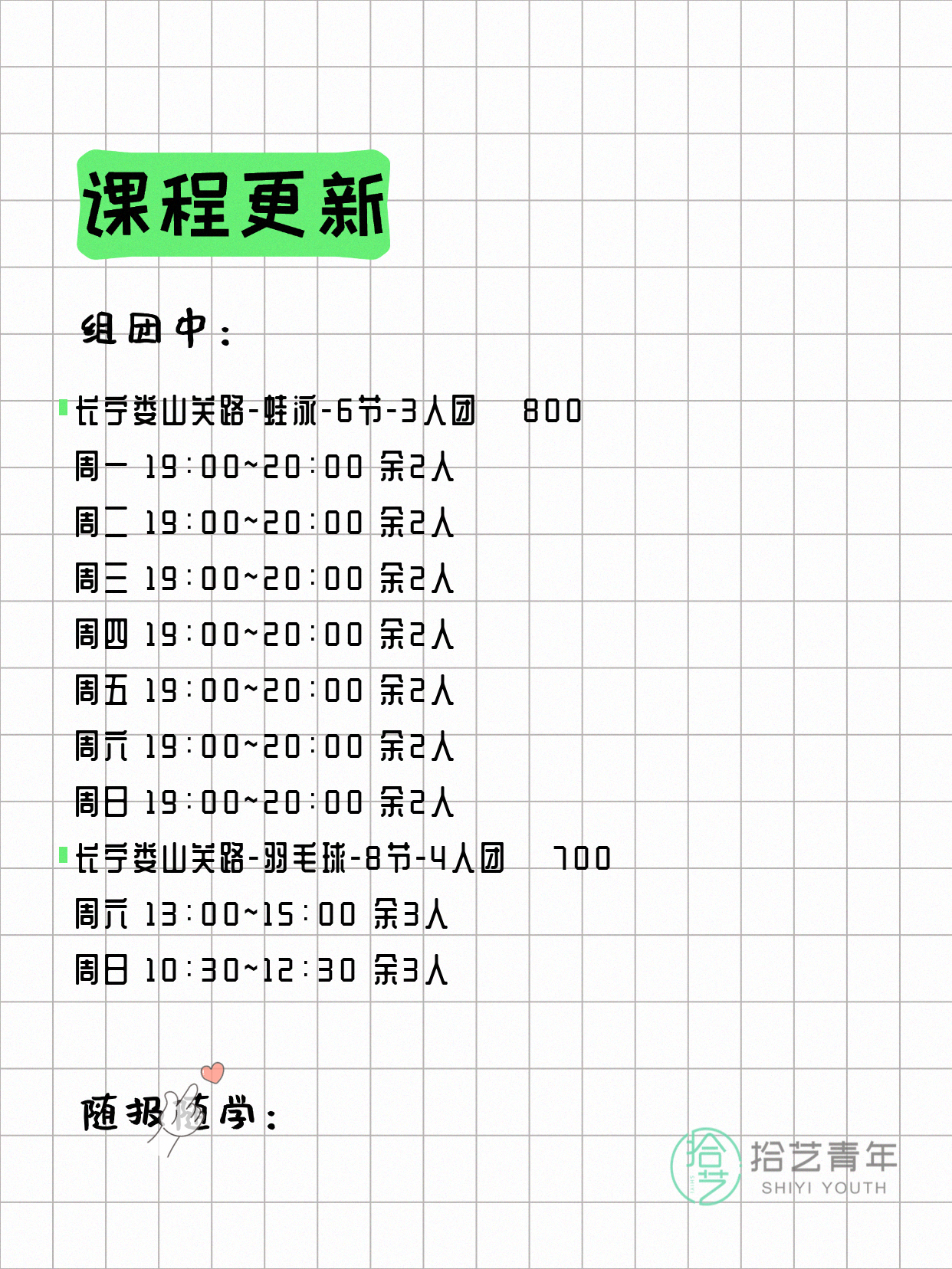 🔥 蛙泳-长宁娄山关路-6节-3人团 💰800