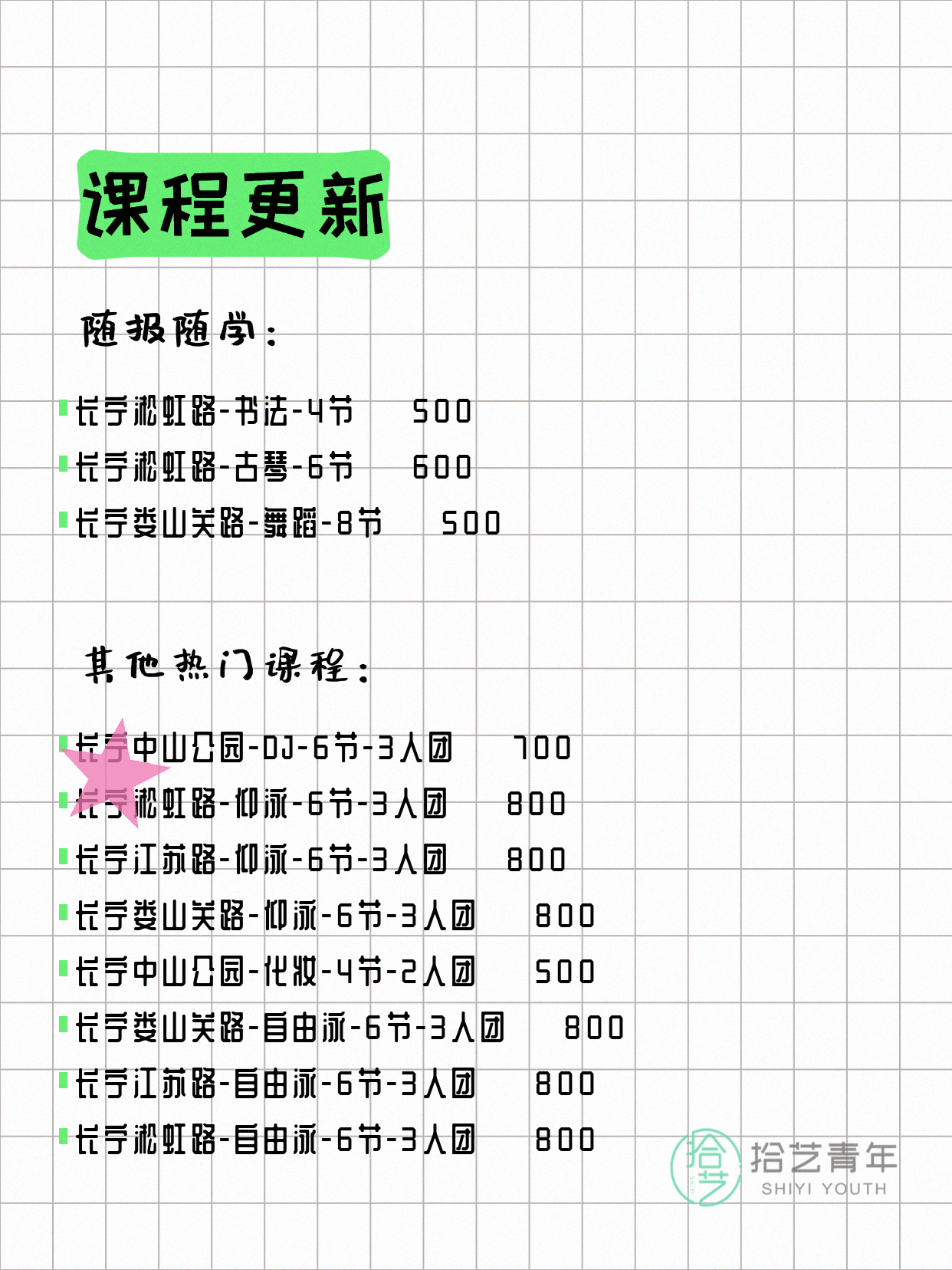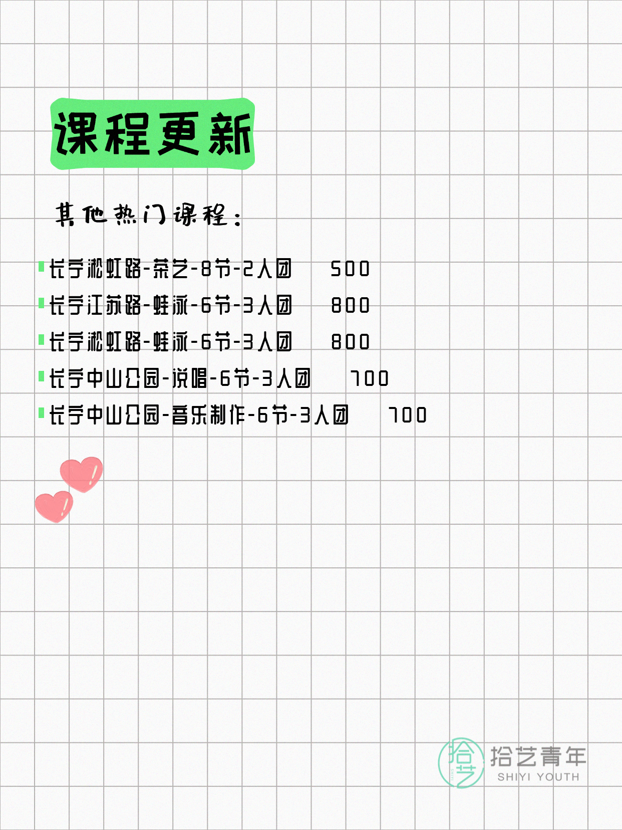 💡 提示:以上课程信息来自拾艺青年小程序,课程可能随报名动态变化,具体以小程序实时信息为准。