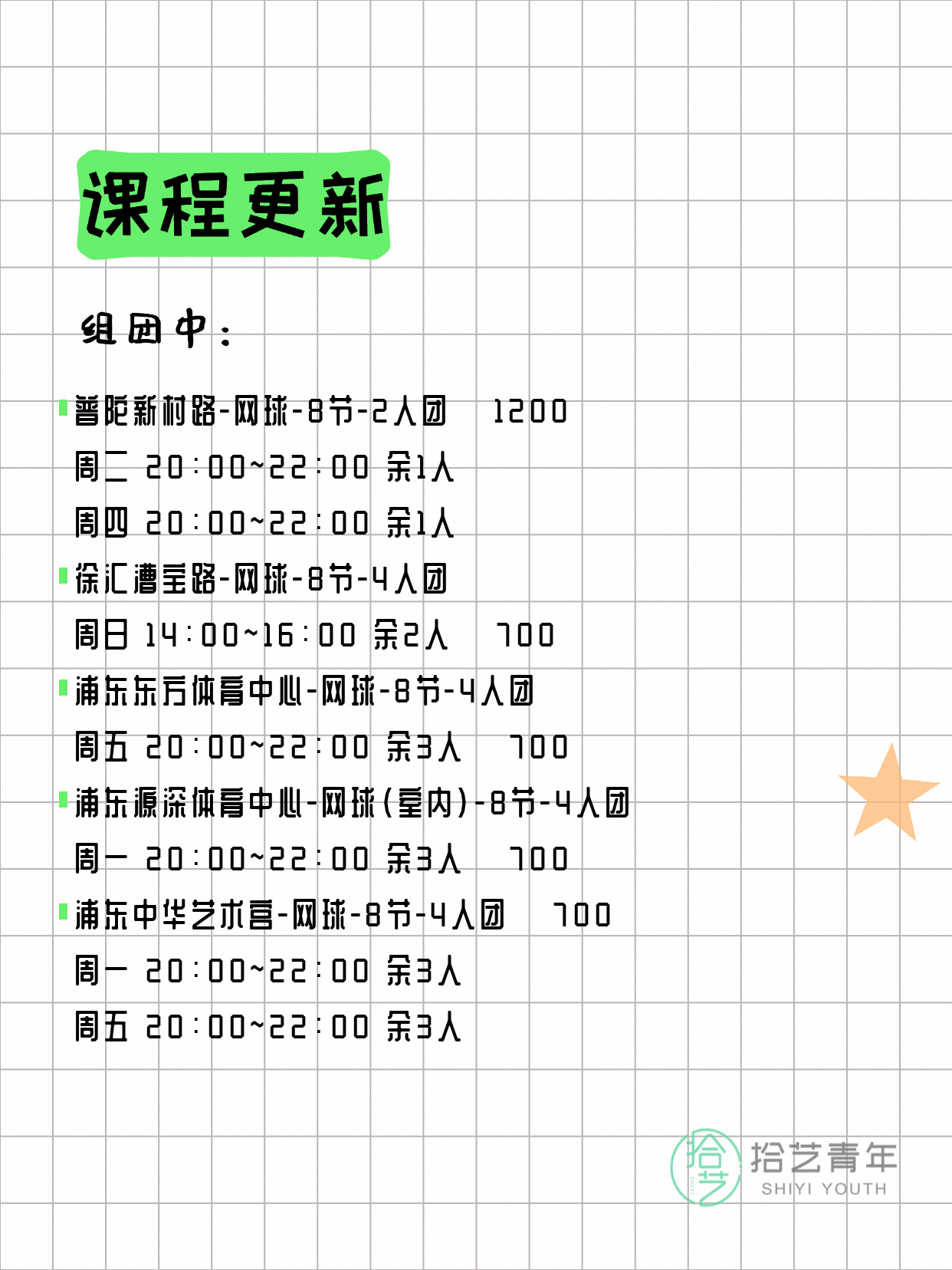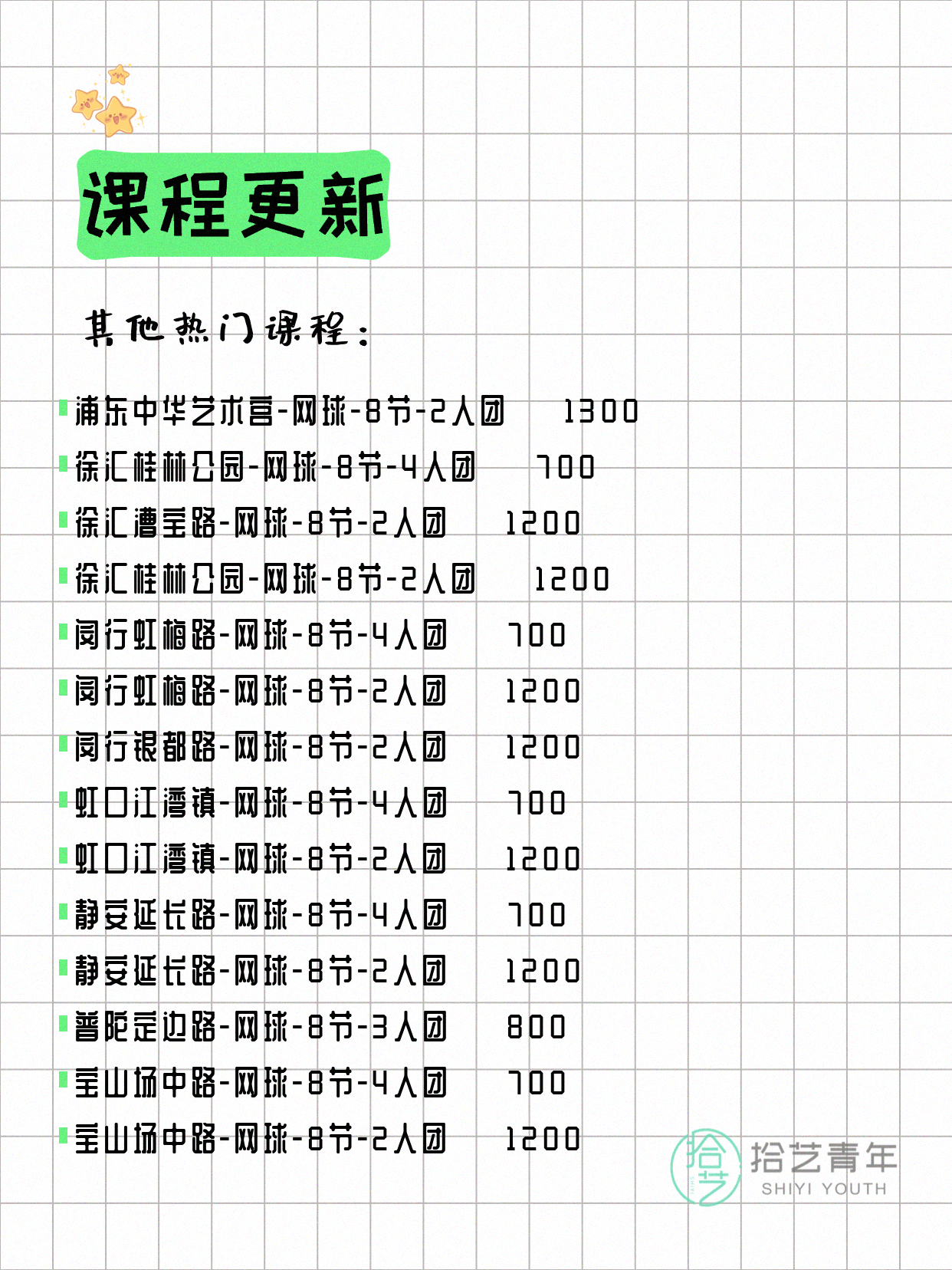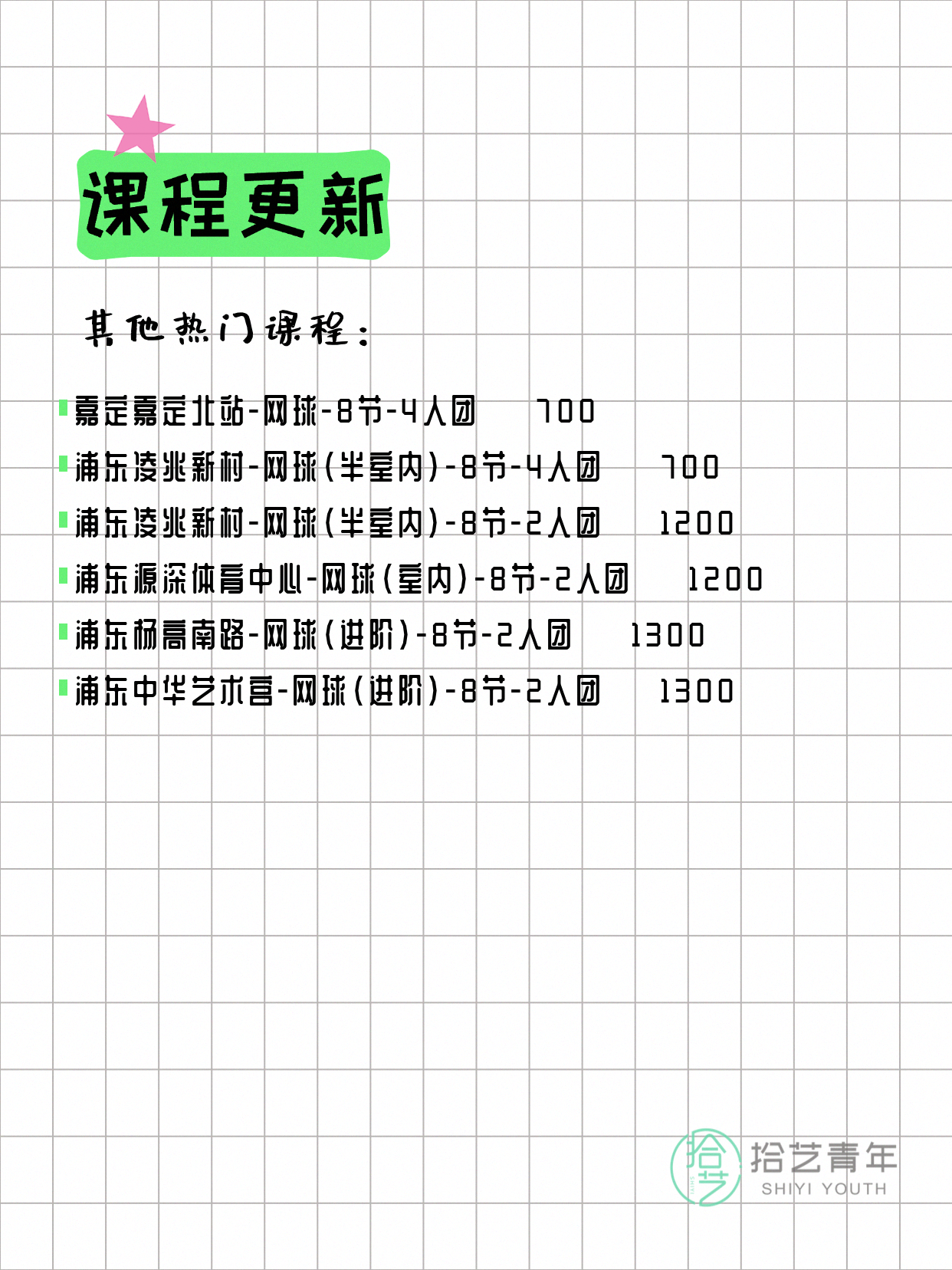 ⭐ 网球-静安延长路-8节-2人团 💰1200
