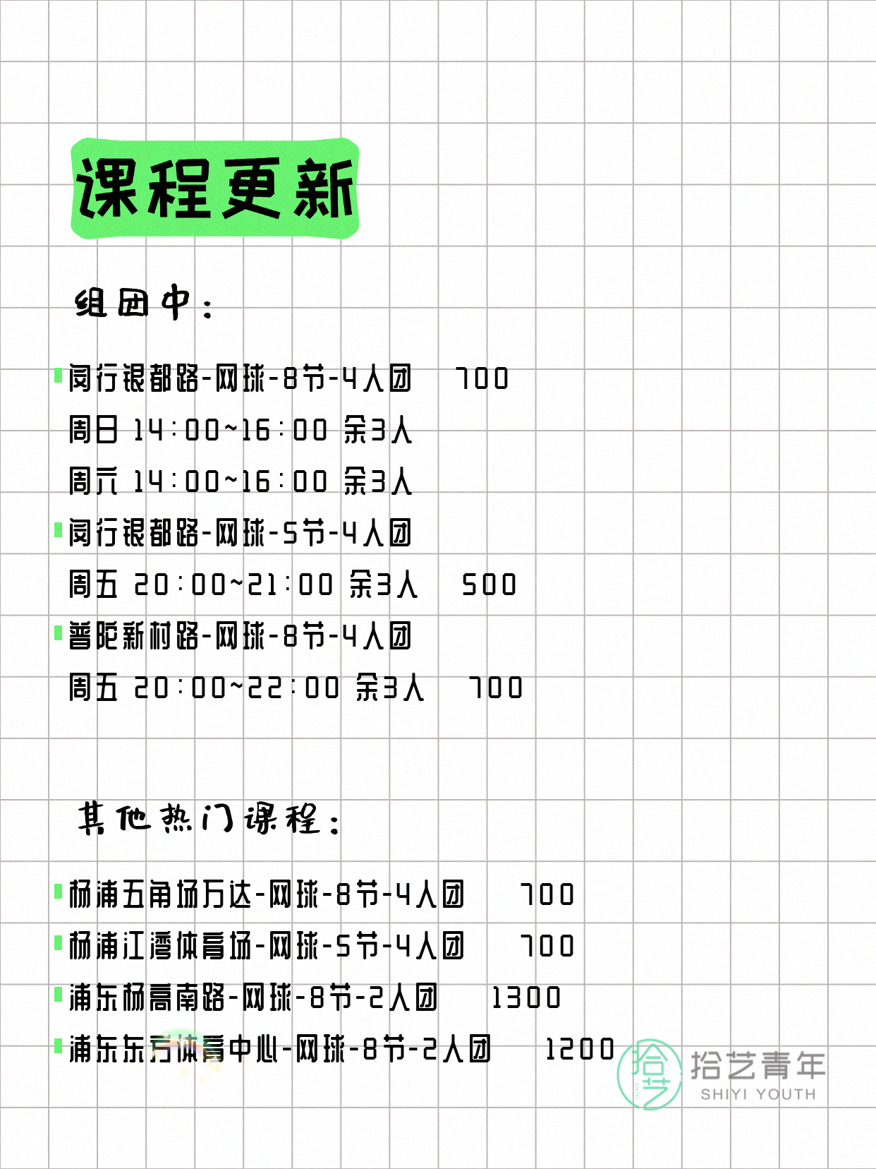 🔥 网球-普陀新村路-8节-2人团 💰1200