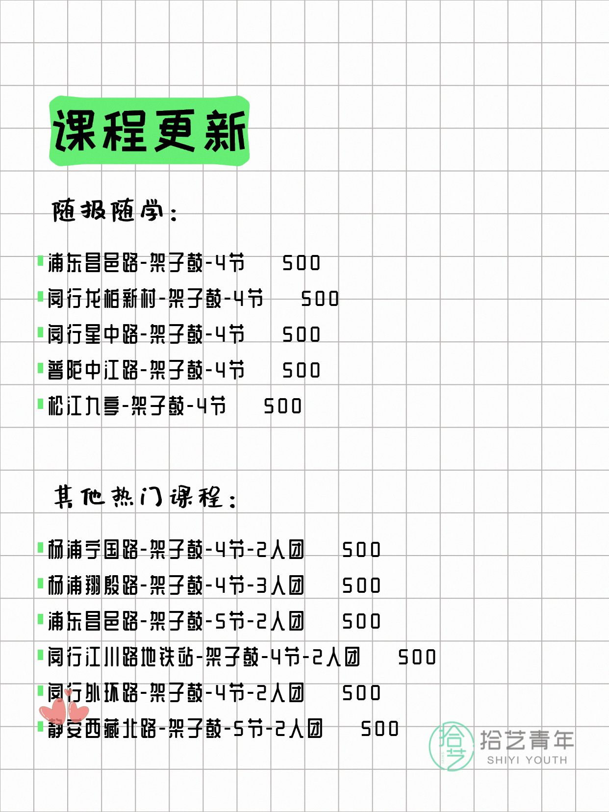 📌 架子鼓-浦东商城路-4节-一人即可 💰500