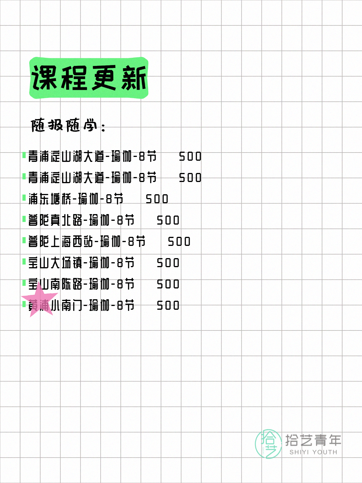 📌 瑜伽-浦东塘桥-8节-一人即可 💰500