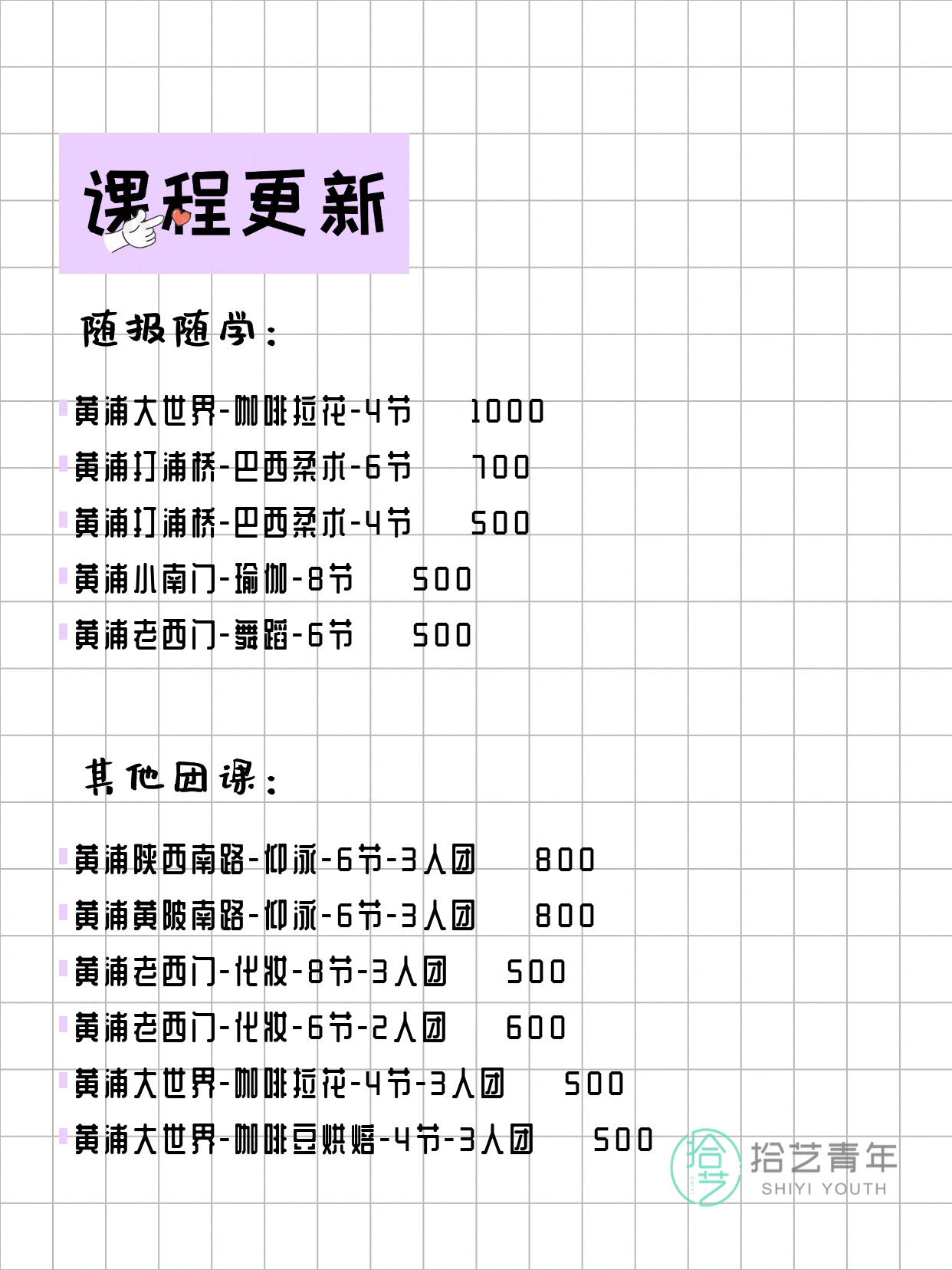 黄浦夜校课表更新啦 咖啡拉花柔术瑜伽舞蹈全都有 十几门好课等你来挑