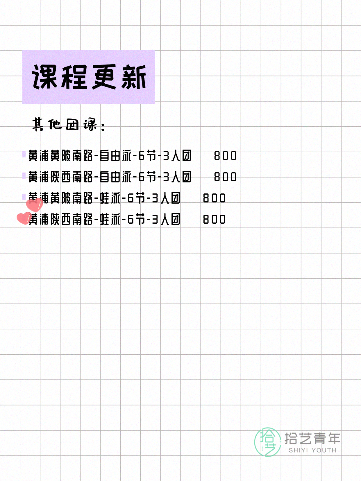 - 黄浦黄陂南路-仰泳-6节-3人团 💰 800