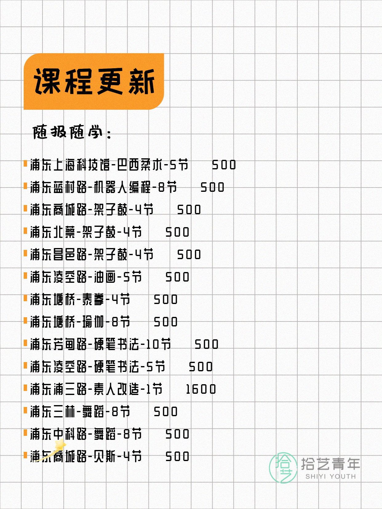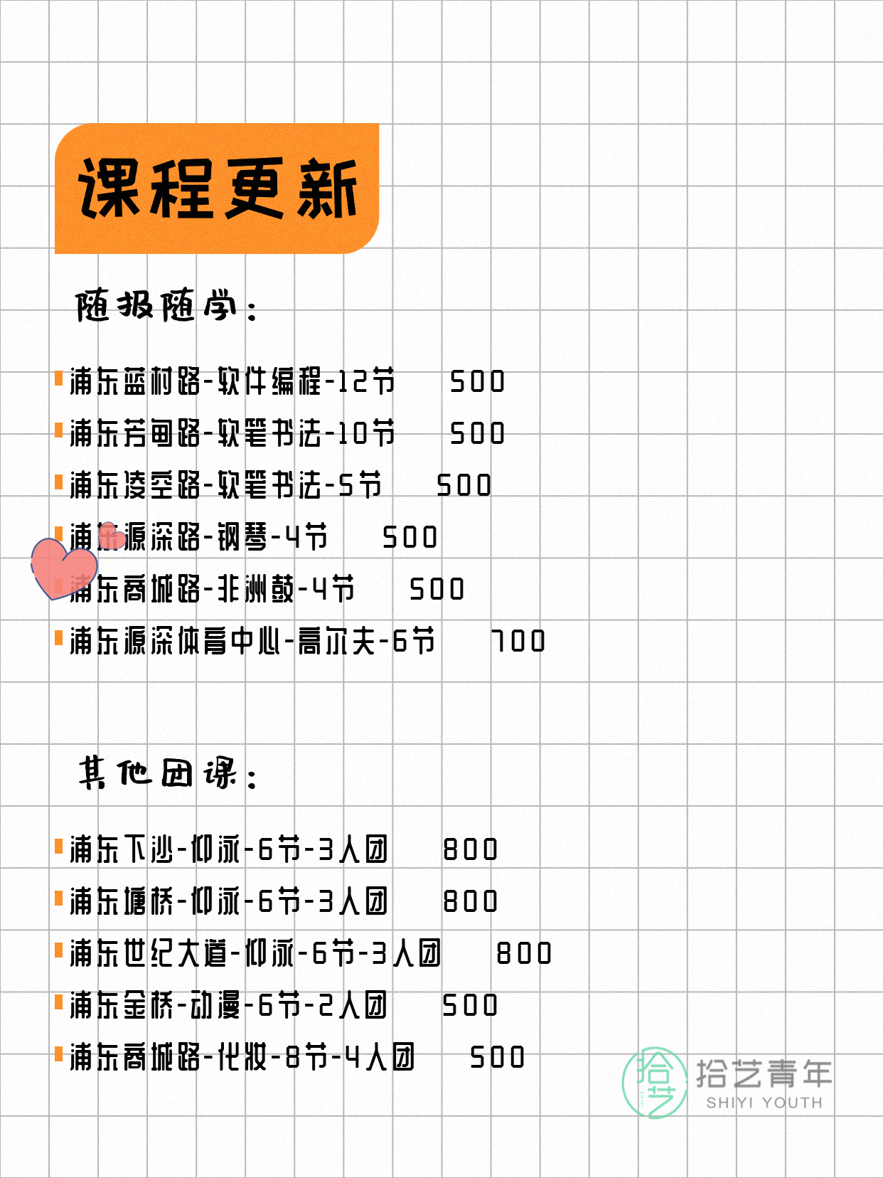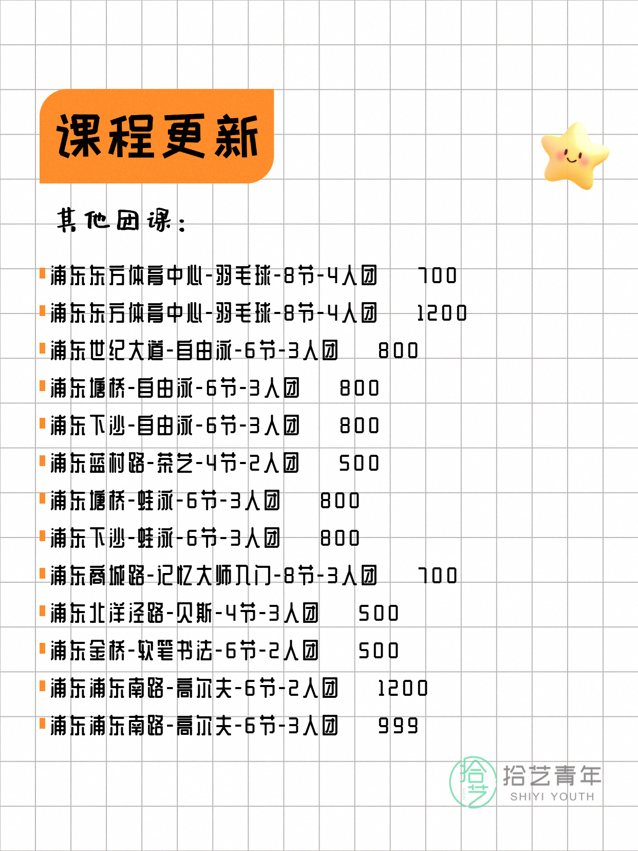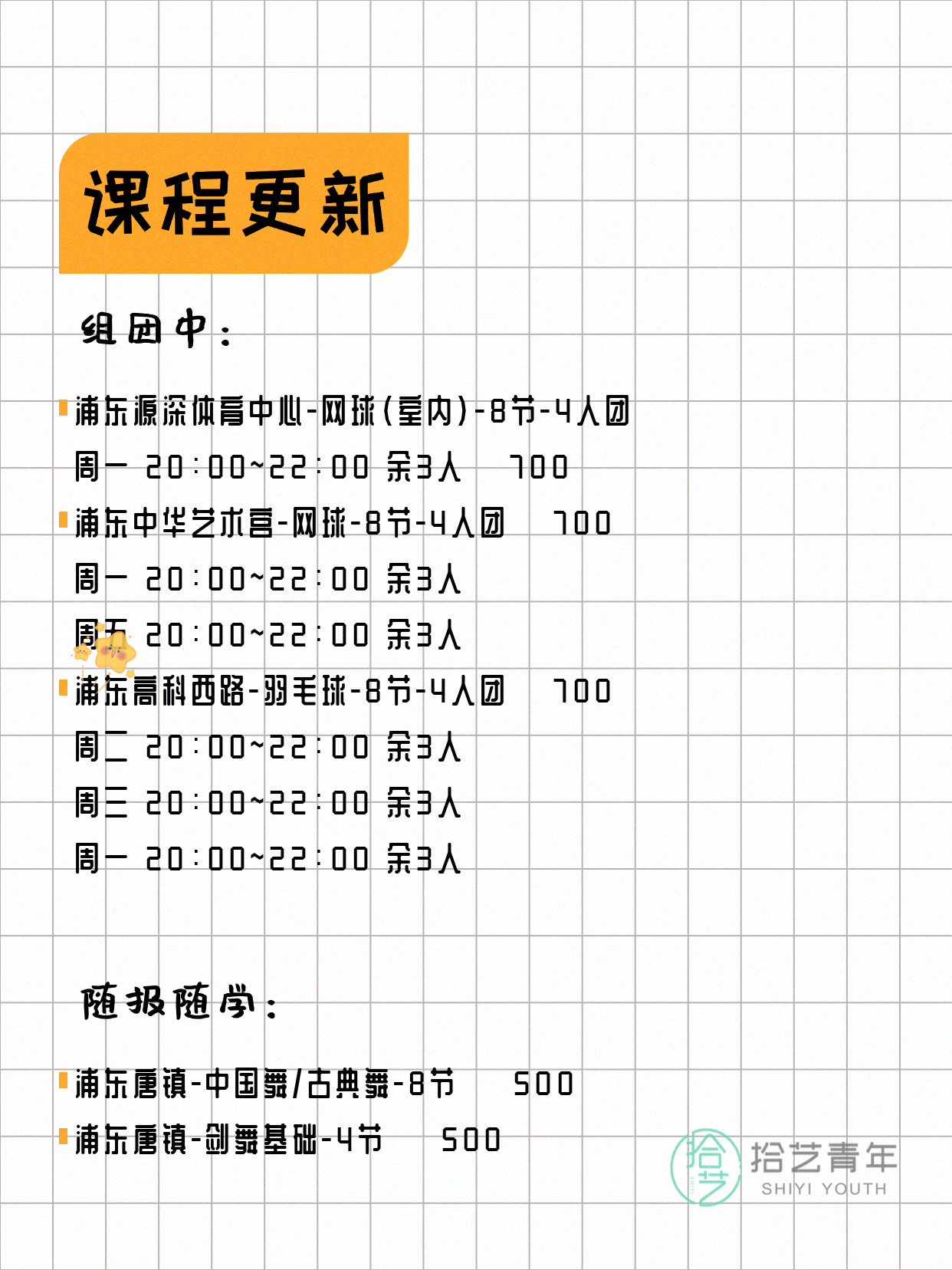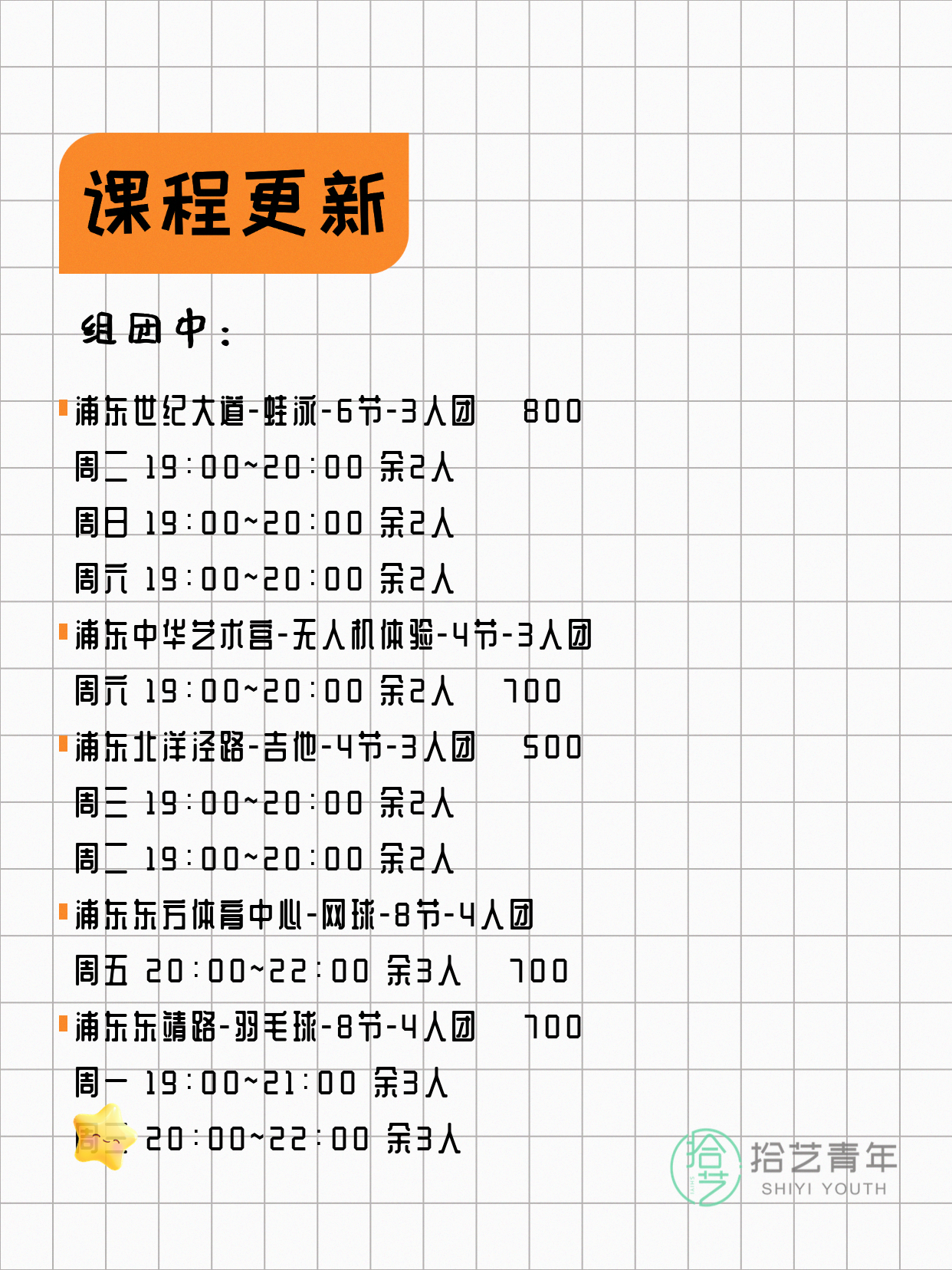 浦东夜校新课表更新啦 三个蛙泳团均余2人即将满团 别错过