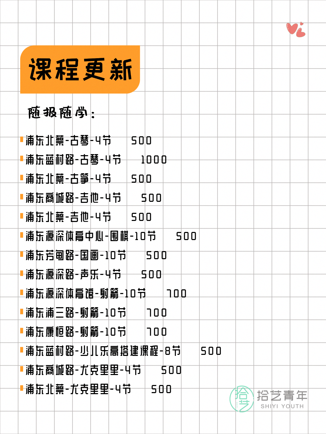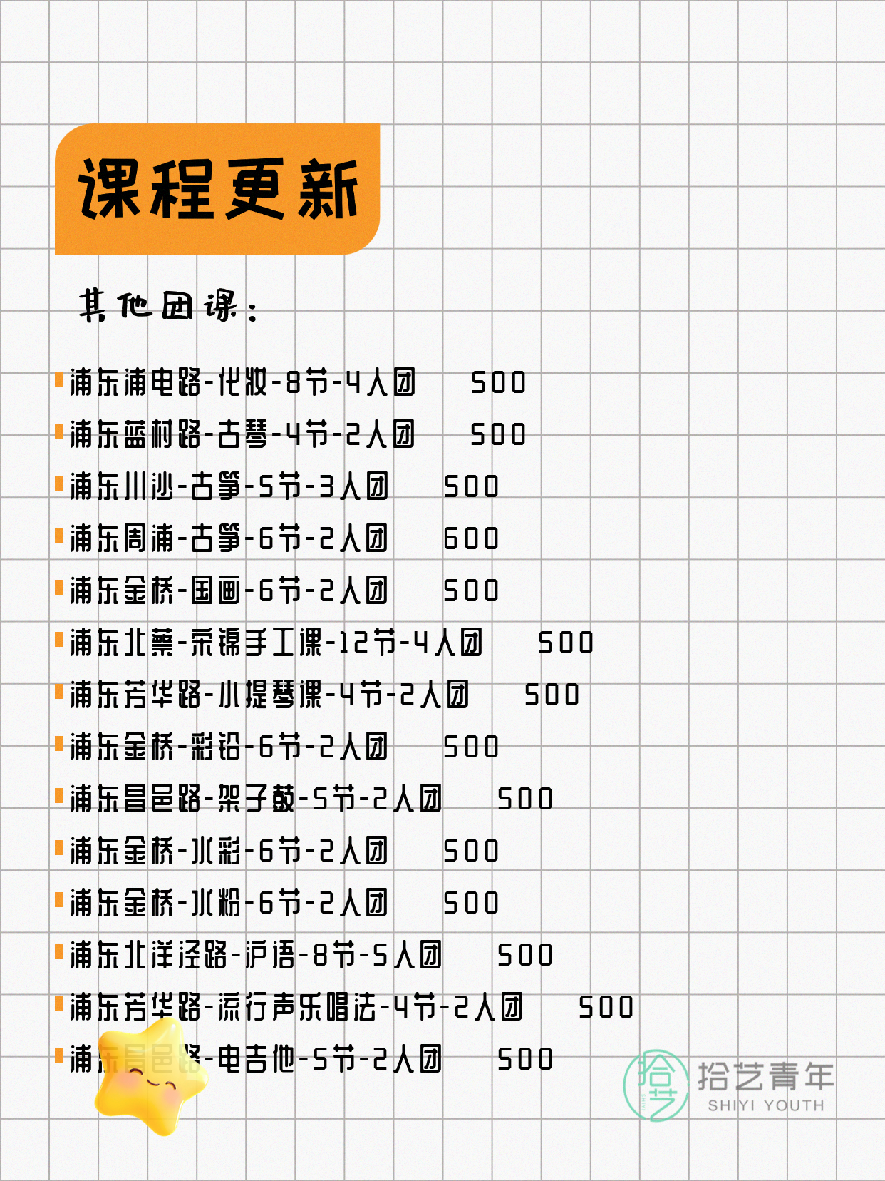 - 浦东北洋泾路-吉他-4节-3人团 周三 19:00-20:00 余2人 💰 500