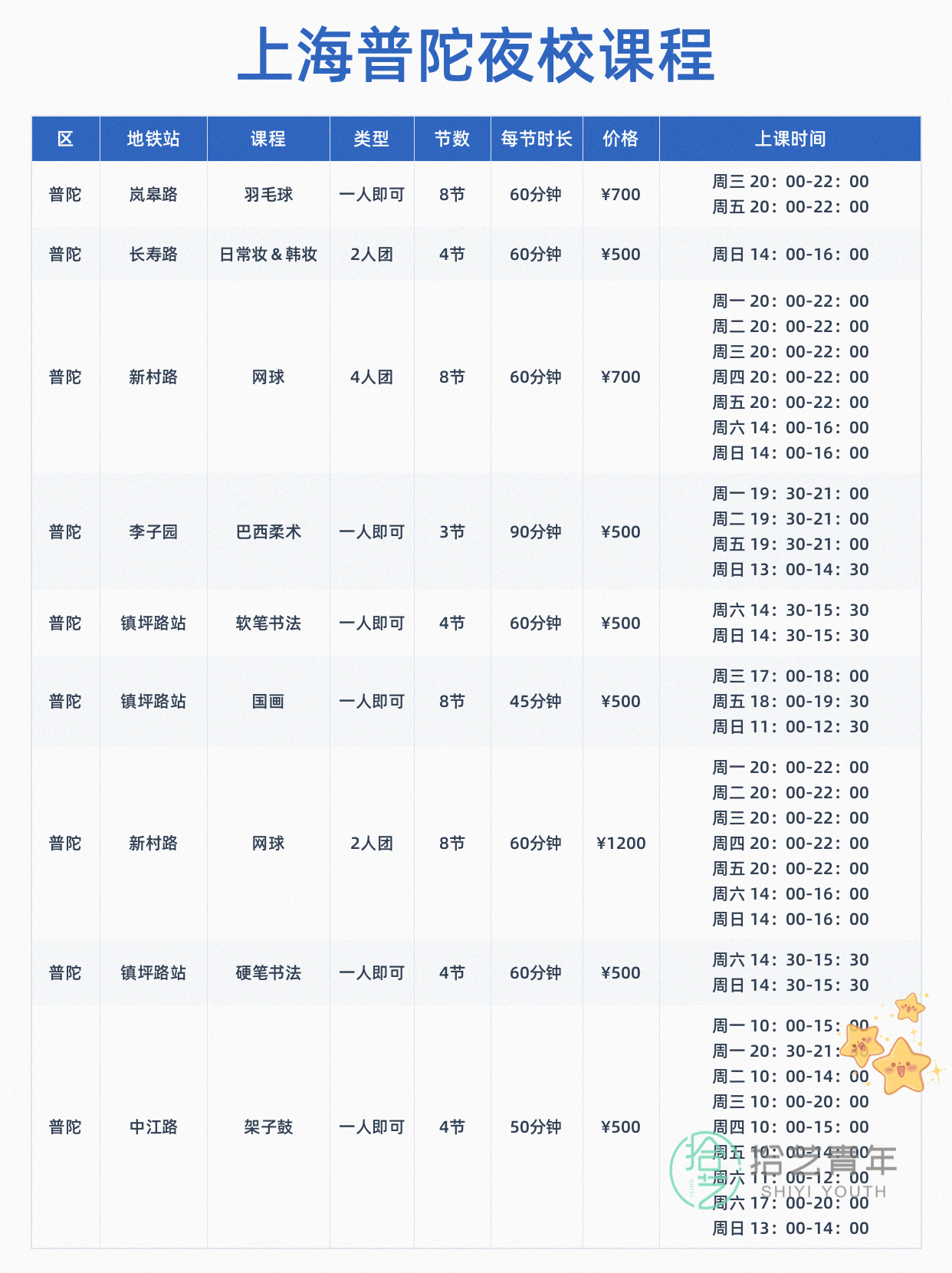 资讯>综合>正文救命普陀夜校好绝拾艺青年2026-04-181 / 3下班地铁直达太方便!📌日常妆&韩妆 🎾网球 📌软笔书法终于找到周末好去处啦~相关标签##上海夜校##普陀##打工人日常##周末好去处##兴趣培养