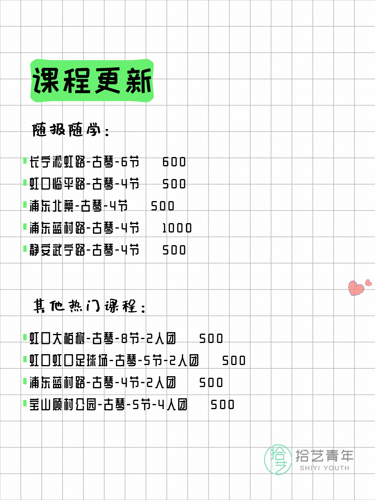 📌 古琴-浦东北蔡-4节-私教 💰500