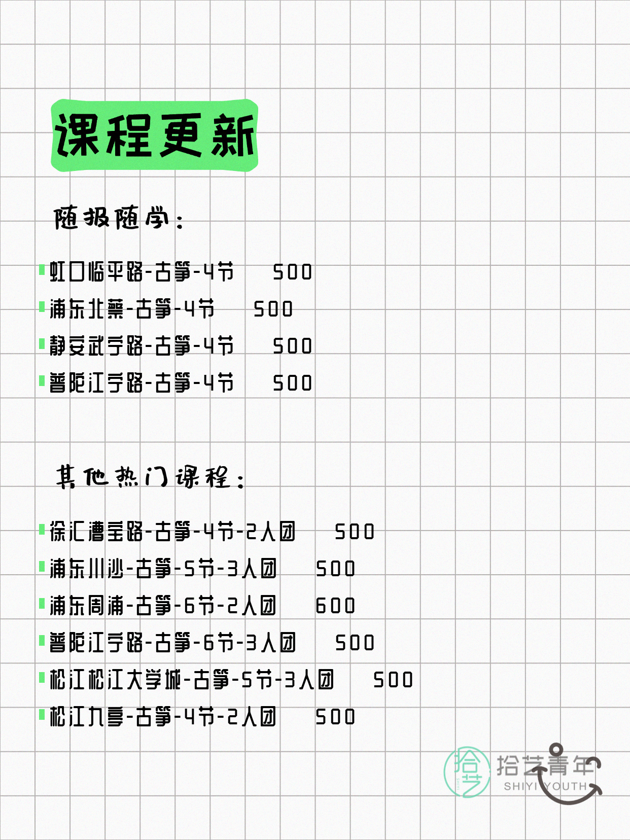 📌 古筝-浦东北蔡-4节-一人即可 💰500
