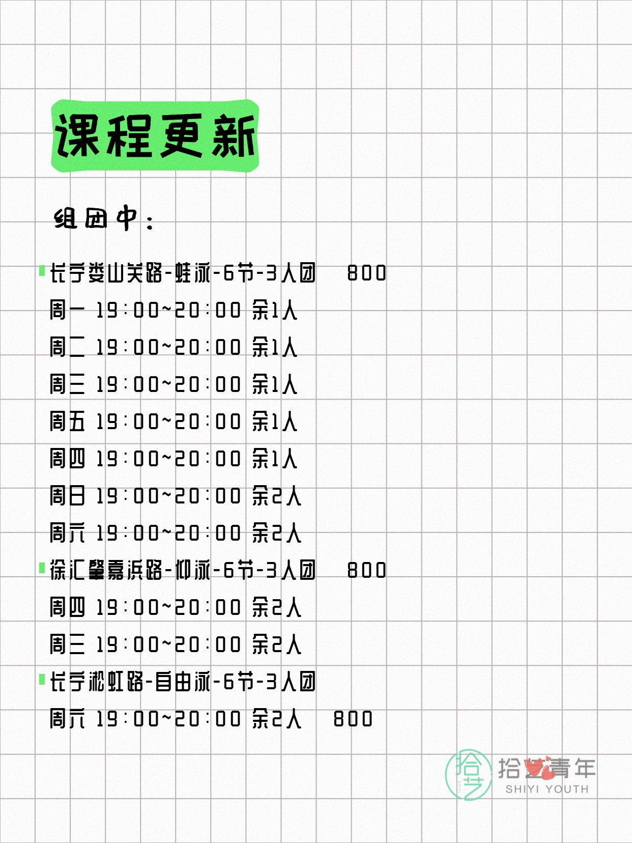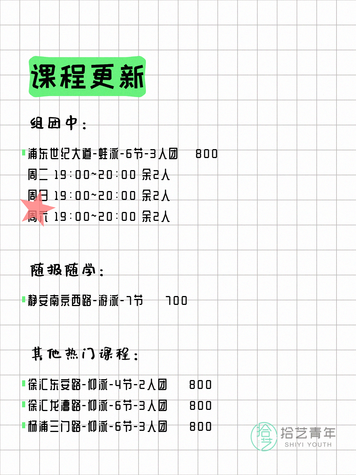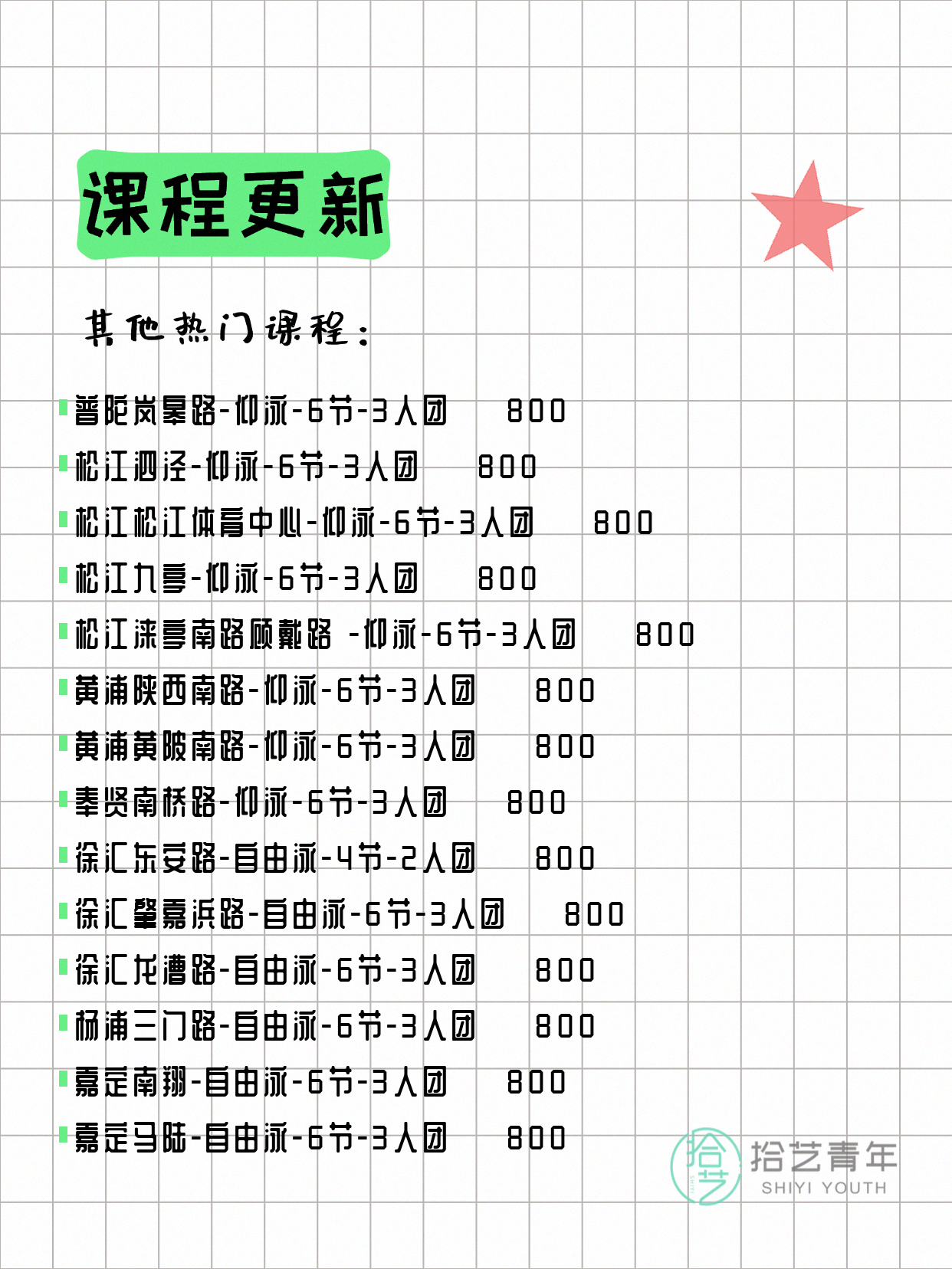 ⭐ 仰泳-普陀岚皋路-6节-3人团 💰800