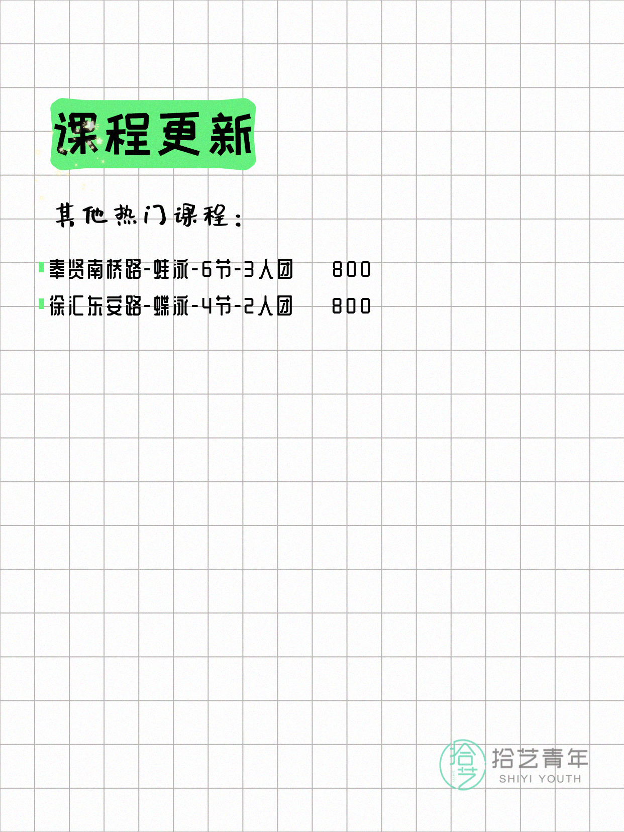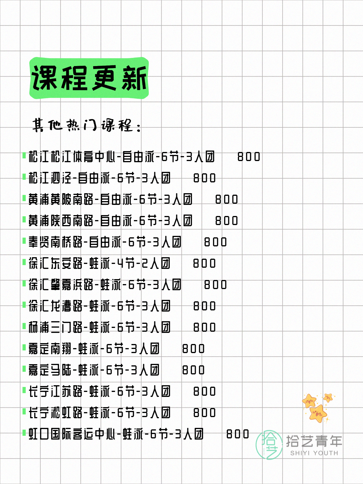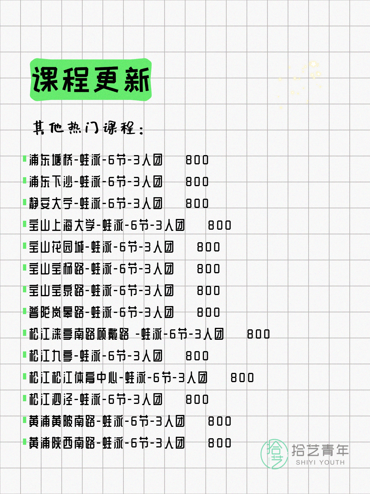 ⭐ 仰泳-普陀岚皋路-6节-3人团 💰800