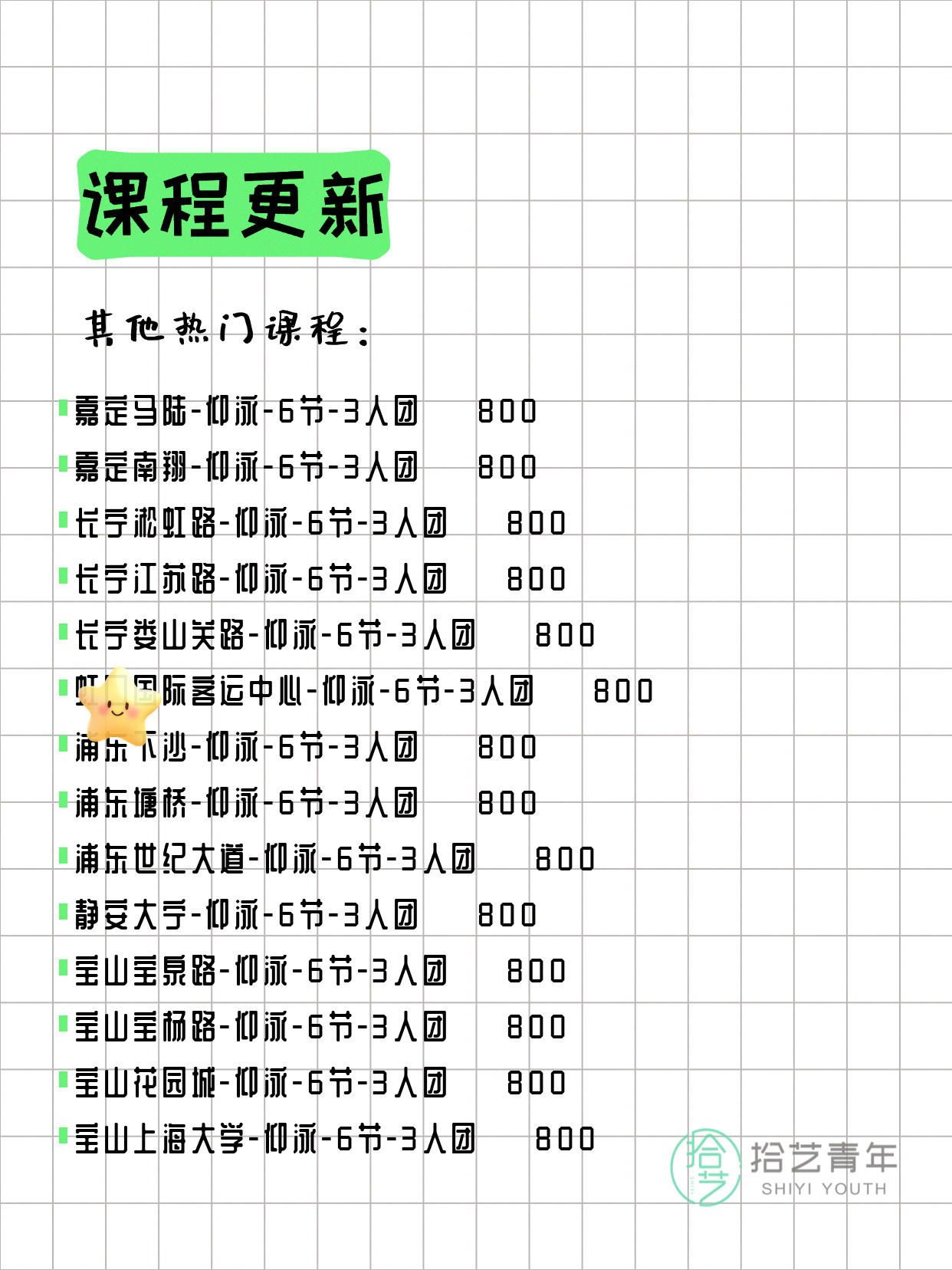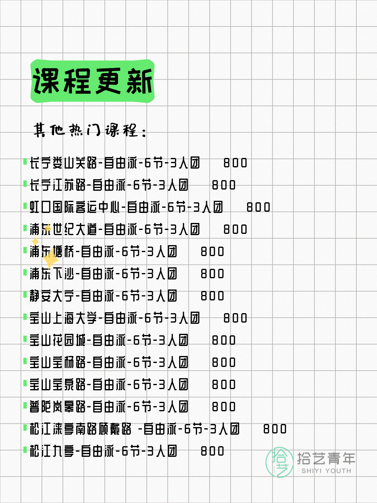 ⭐ 仰泳-宝山宝杨路-6节-3人团 💰800