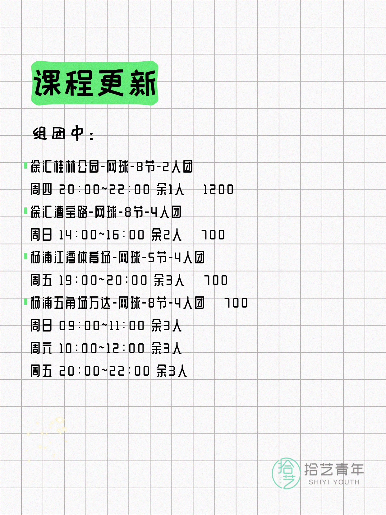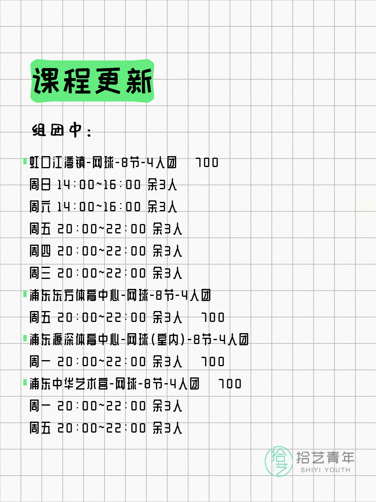 🔥 网球-普陀新村路-8节-4人团 💰700