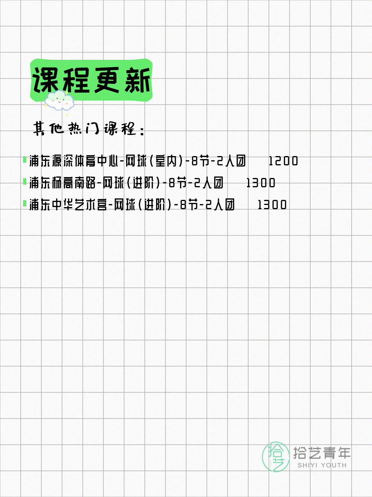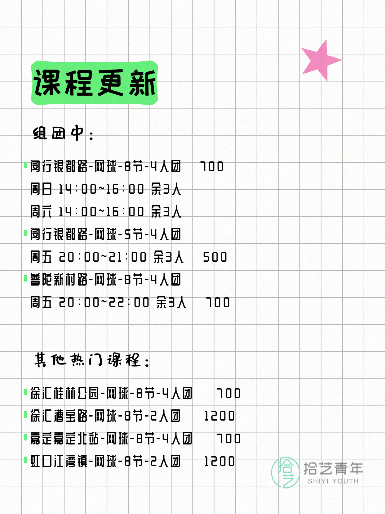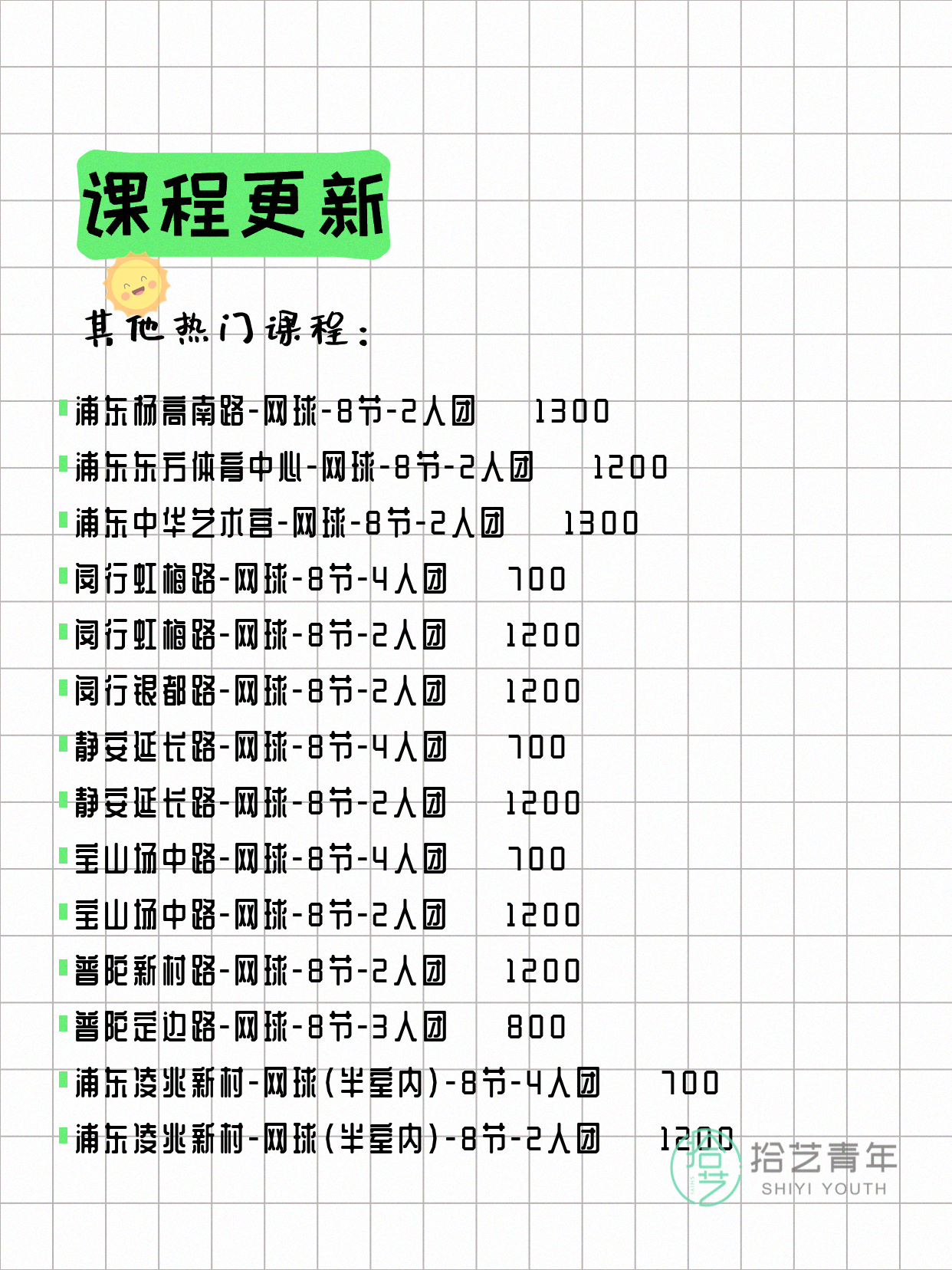 ⭐ 网球-静安延长路-8节-2人团 💰1200
