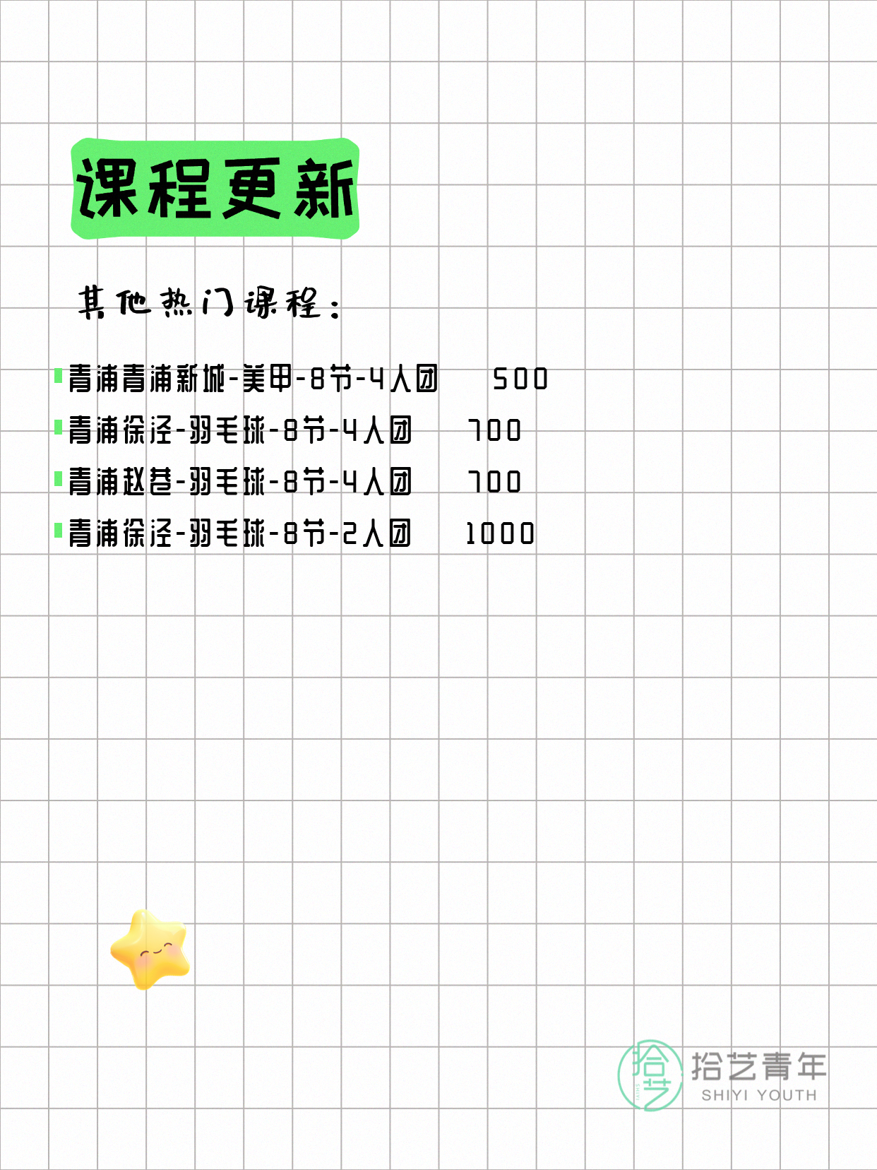 ⭐ 羽毛球-青浦徐泾-8节-2人团 💰1000