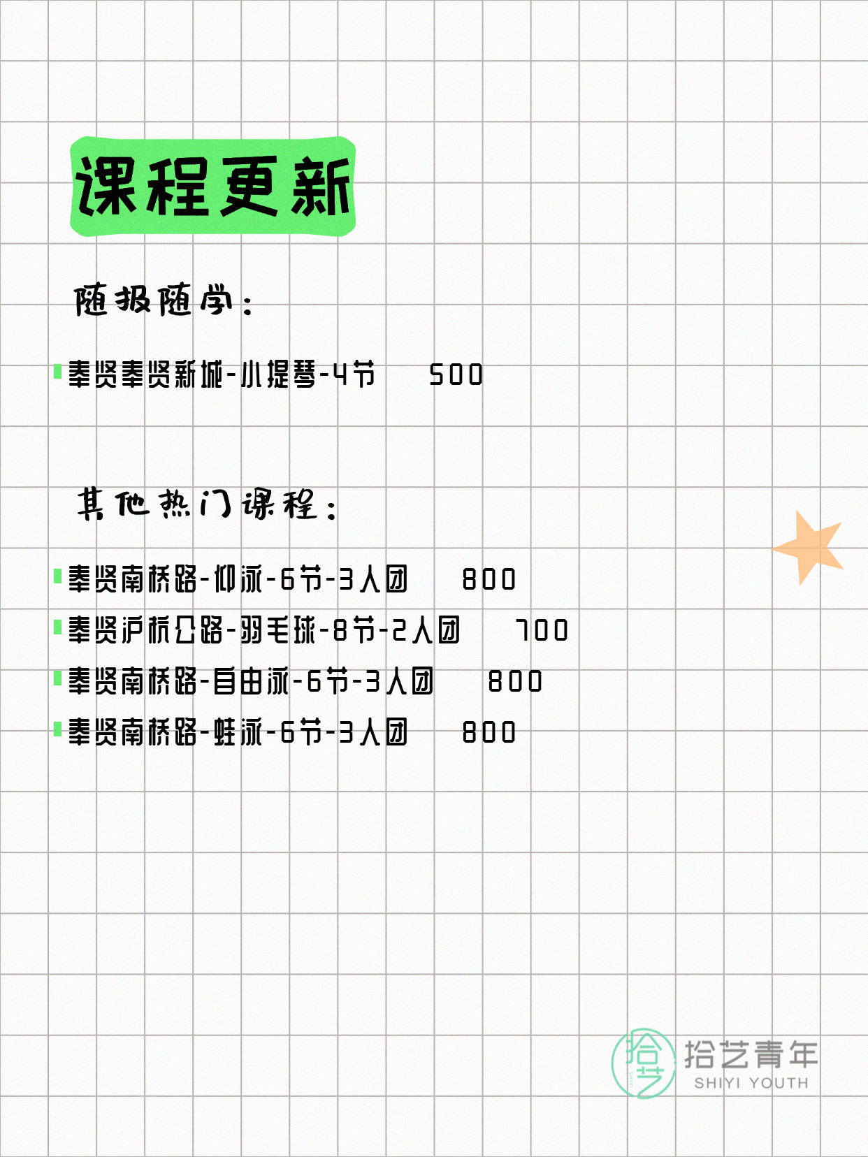 ⭐ 仰泳-奉贤南桥路-6节-3人团 💰800