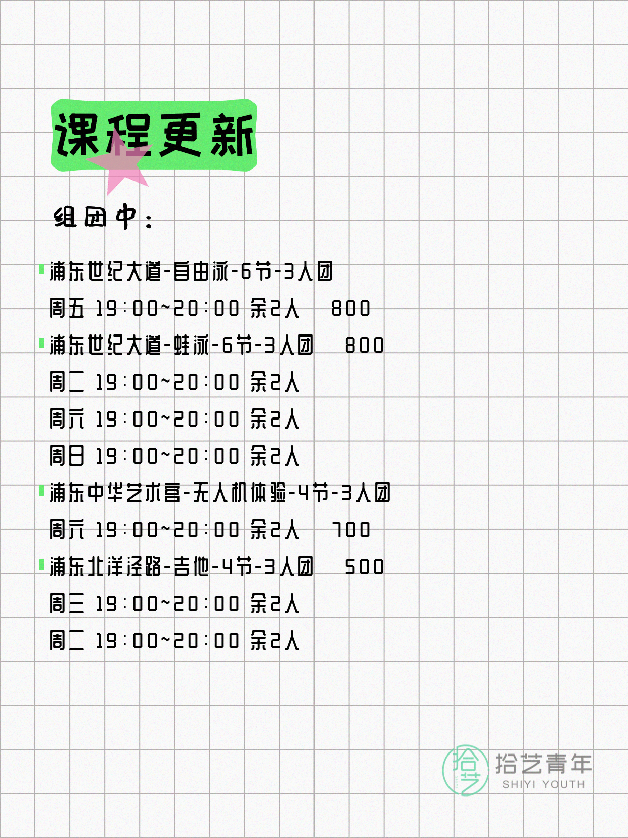 🔥 自由泳-浦东世纪大道-6节-3人团 💰800
