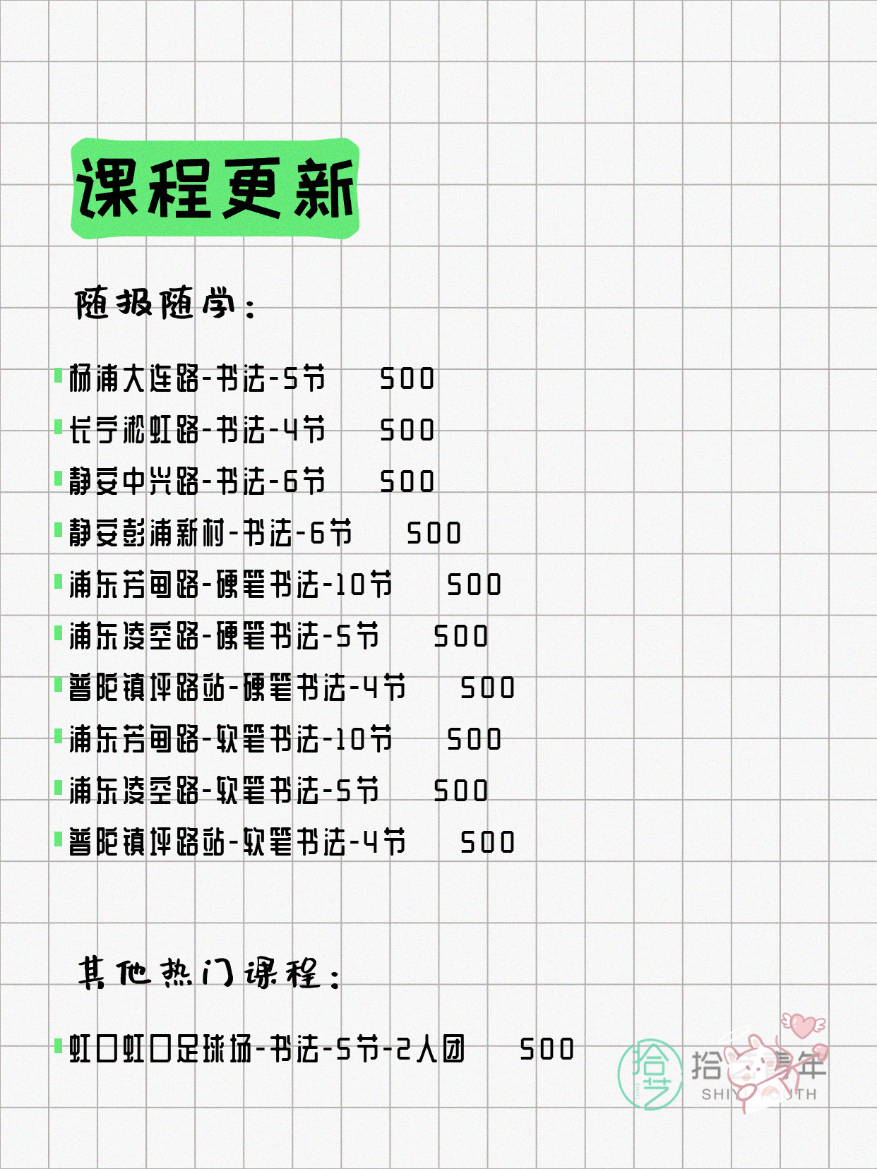 📌 硬笔书法-浦东芳甸路-10节-私教 💰500