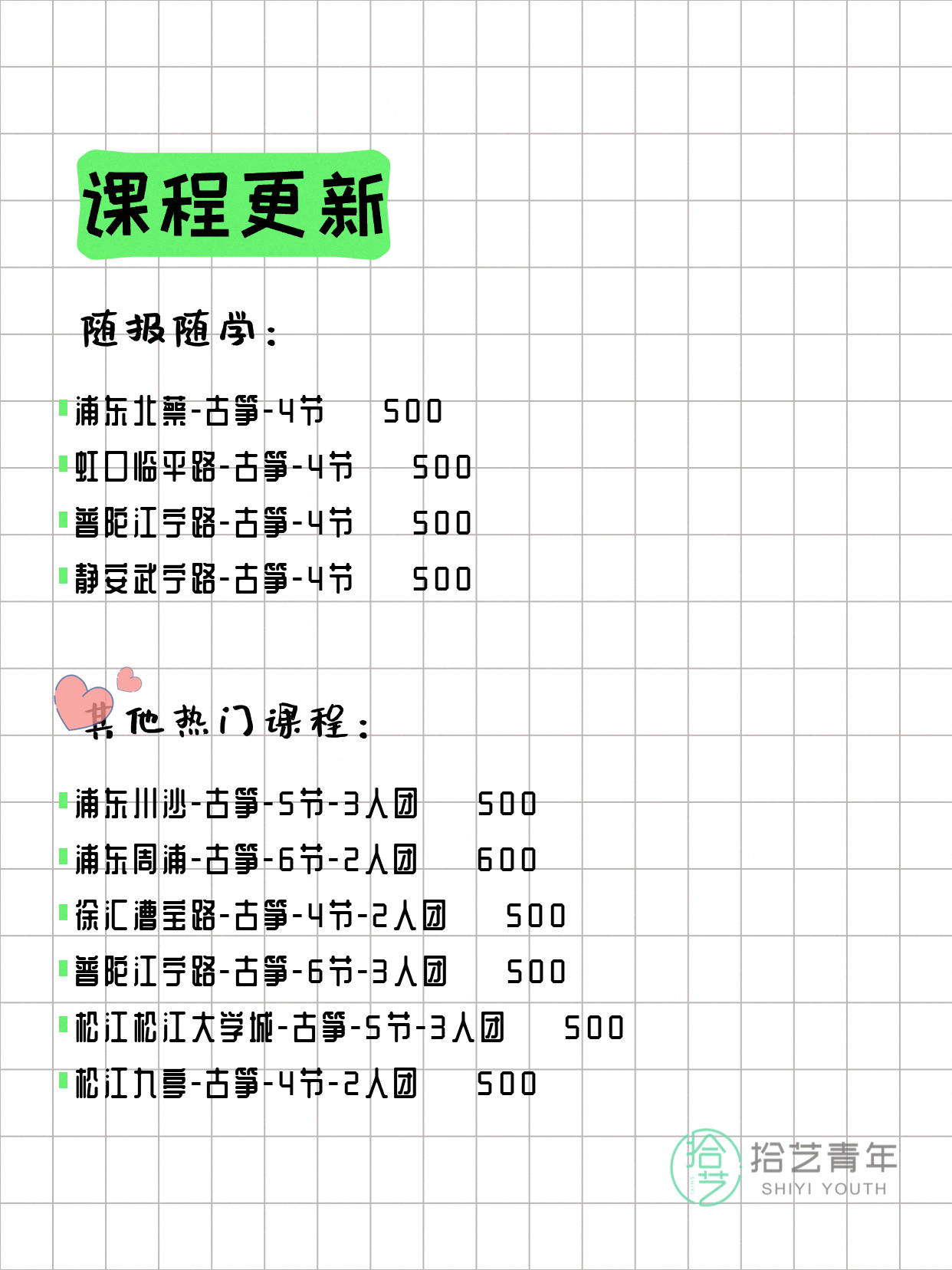 📌 古筝-浦东北蔡-4节-一人即可 💰500