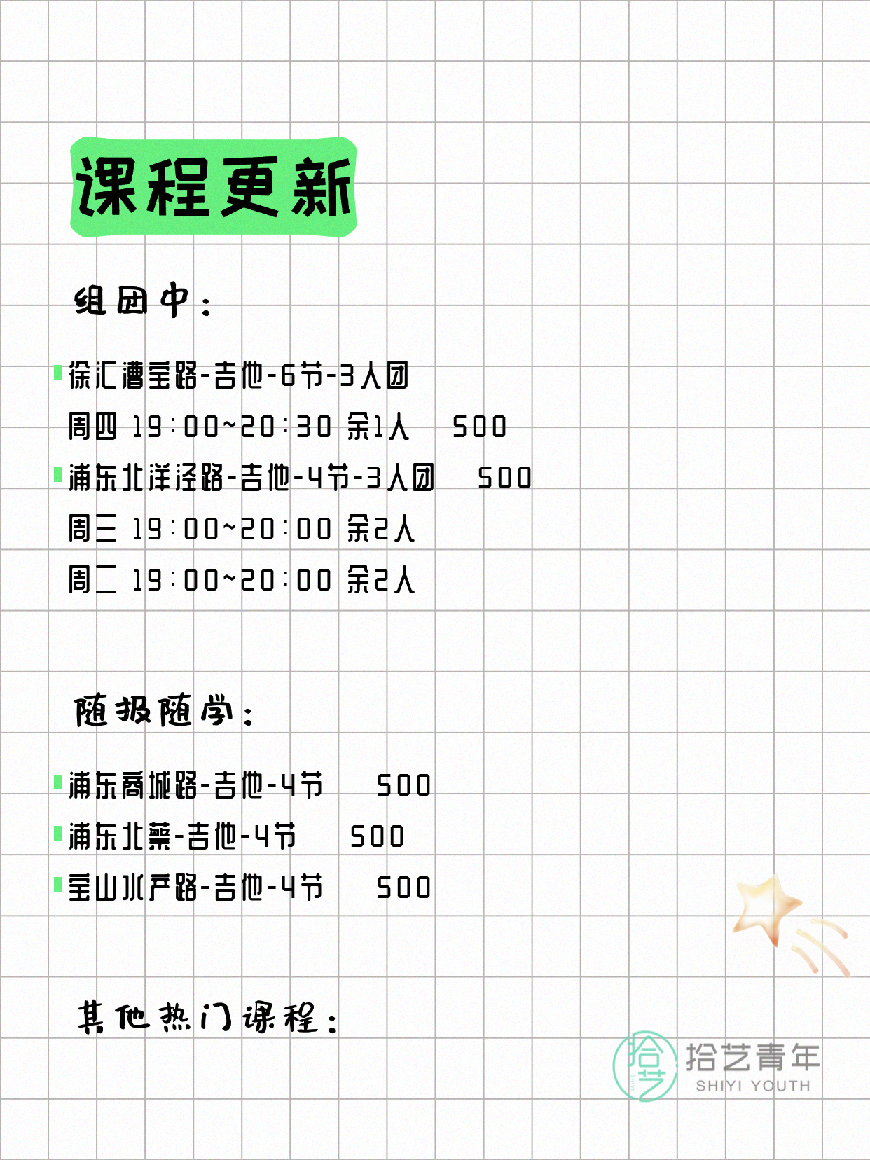 🔥 吉他-浦东北洋泾路-4节-3人团 💰500