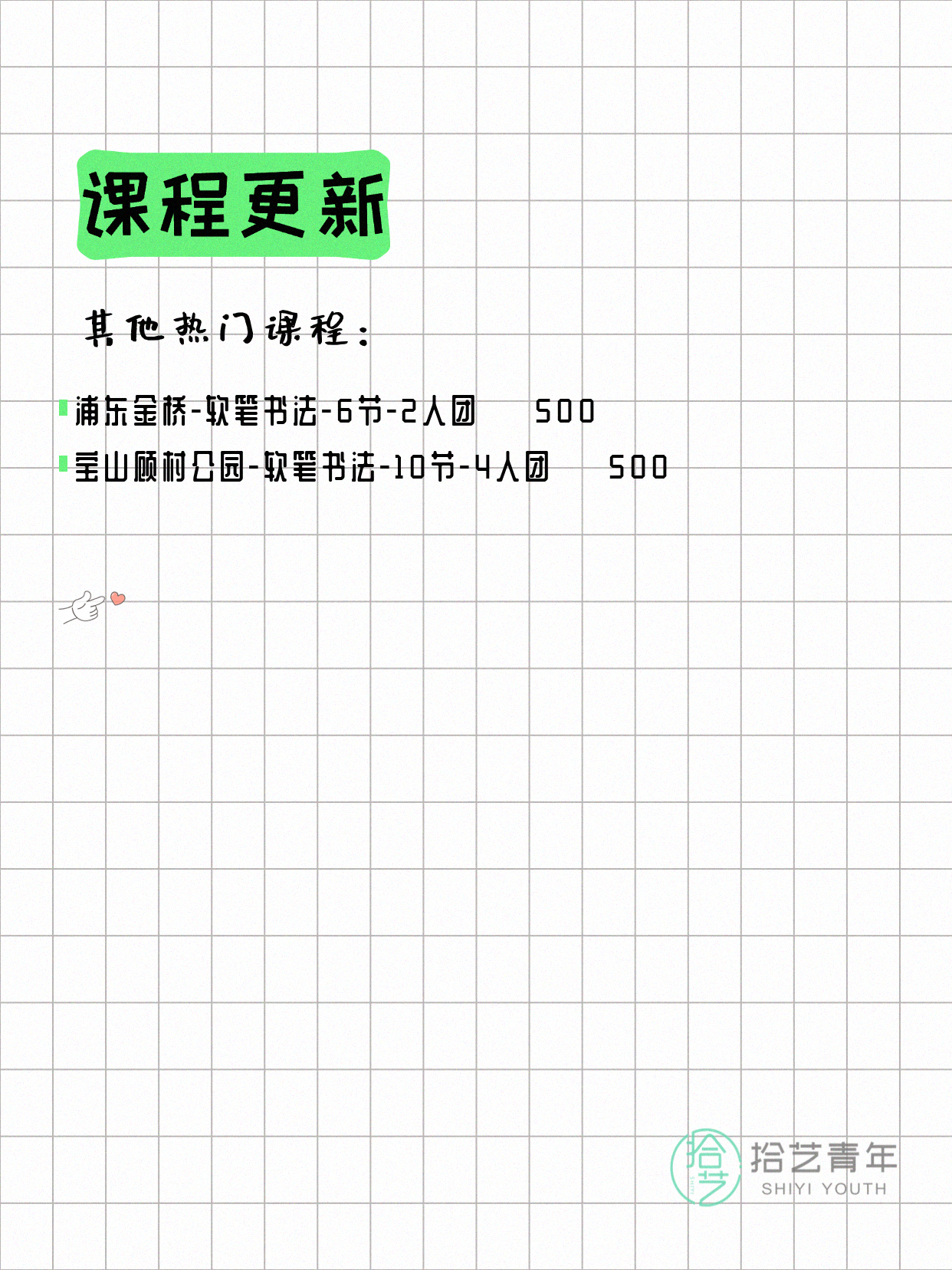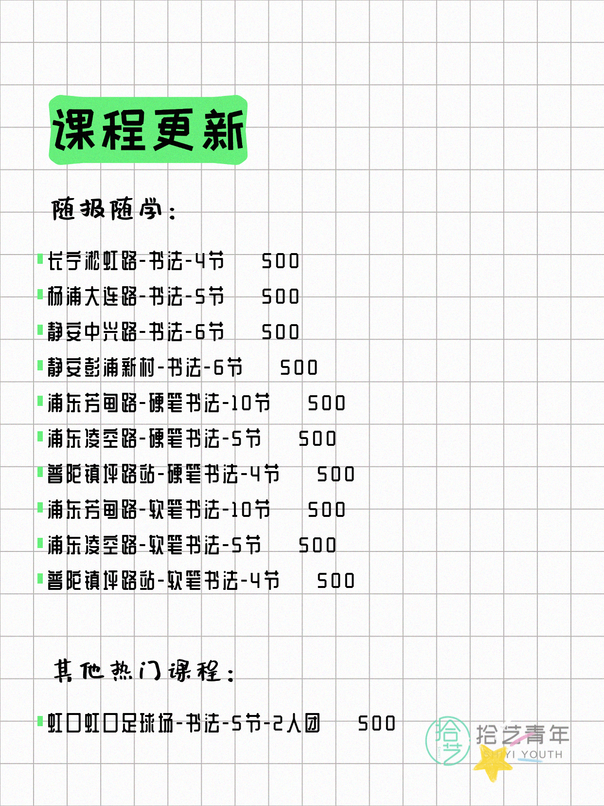 📌 硬笔书法-浦东芳甸路-10节-私教 💰500