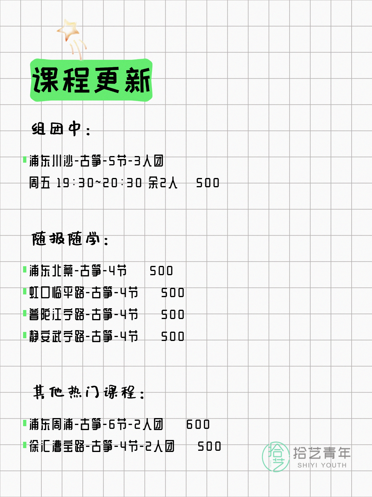 🔥 古筝-浦东川沙-5节-3人团 💰500