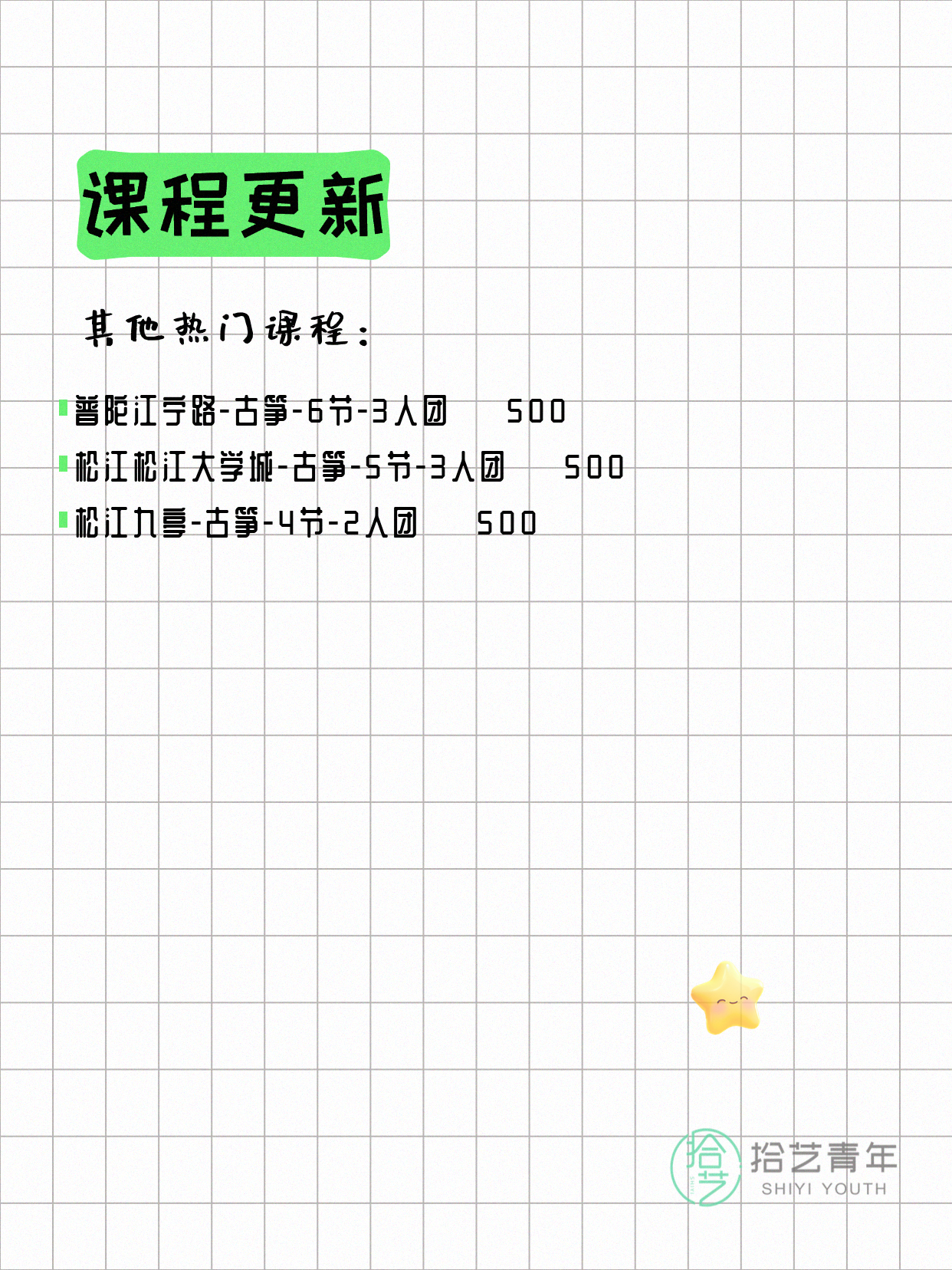 ⭐ 古筝-松江松江大学城-5节-3人团 💰500