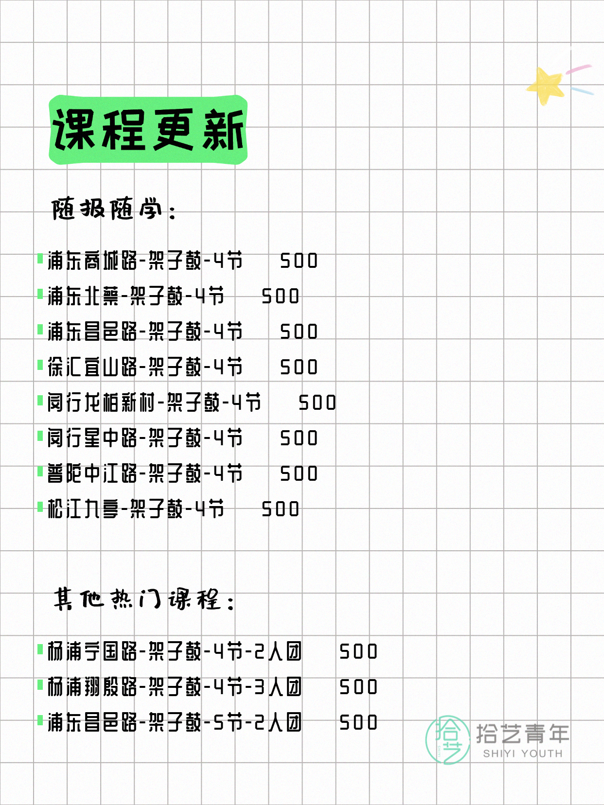 ⭐ 架子鼓-杨浦翔殷路-4节-3人团 💰500