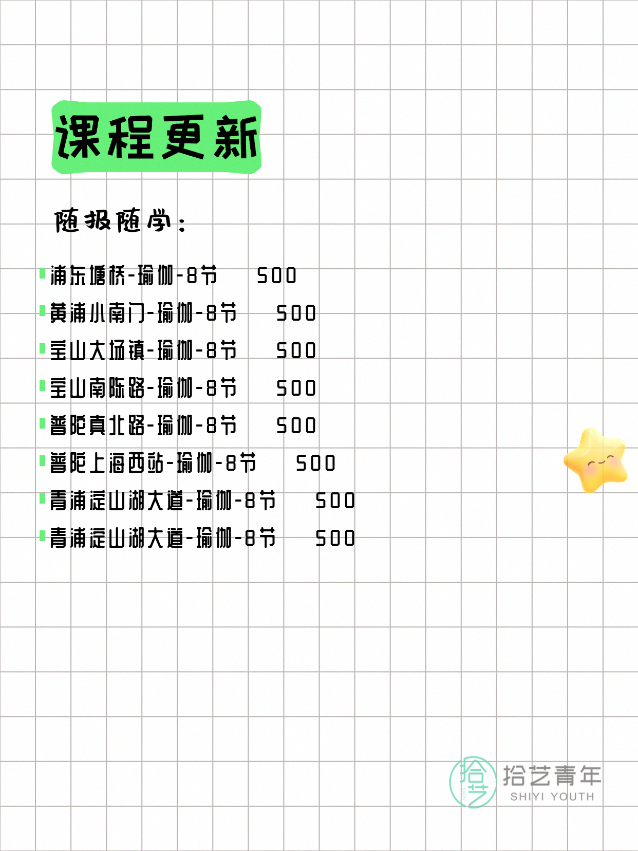 📌 瑜伽-浦东塘桥-8节-一人即可 💰500